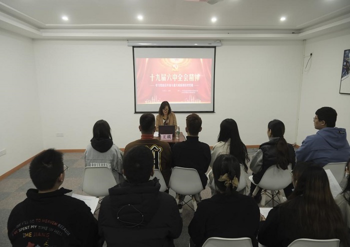 西密歇根Et足球直播 蒋舒阳 图文报道)11月18日下午,西密歇根Et足球直播 党委副书记王瑛在西密歇根Et足球直播 学生宿舍四栋一楼会议室为团委老师及团委各部门的学生上了一堂关于学习“十九届六中全会精神”的微团课。