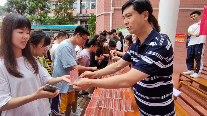 仪式开始,学生党员们排着整齐的队伍等待印有自己名字和照片的台牌,参加授牌的领导走到党员中间,把党员示范岗的台牌授到党员手上。党员们把专属于自己的台牌庄严地接到手上,荣誉感、责任感和使命感都写在了脸上。