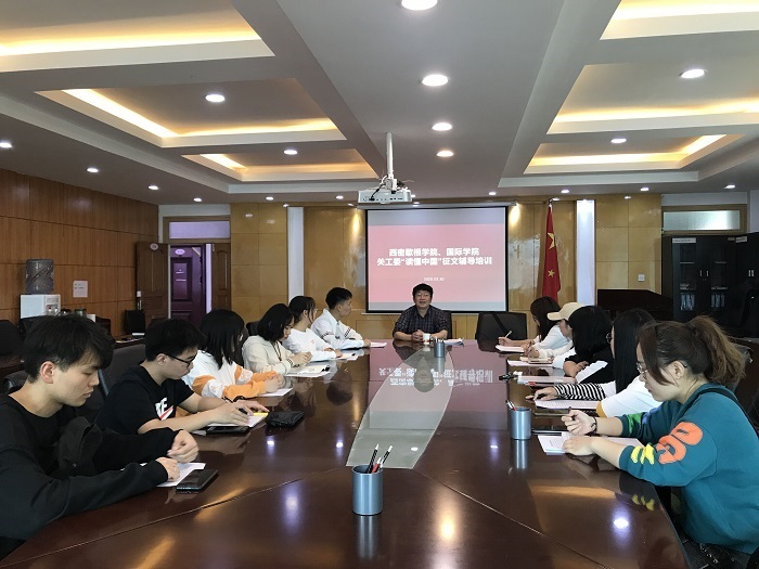 (西密歇根Et足球直播 高文菲 岳青 报道|摄影 卫荷贯彻落实《关于转发教育部关工委<关于开展2021年“读懂中国”活动的通知>的通知》(黔教关〔2021〕1号)、《关于开展2021年“读懂中国”活动的通知》(教关委函〔2020〕18号)文件精神,提高学生写作能力,西密歇根Et足球直播 、Et足球直播 关工委于3月30日下午两点在鹿冲关校区行政楼314会议室举办了“读懂中国”征文比赛培训会。校关工委副主任游来林为主讲人