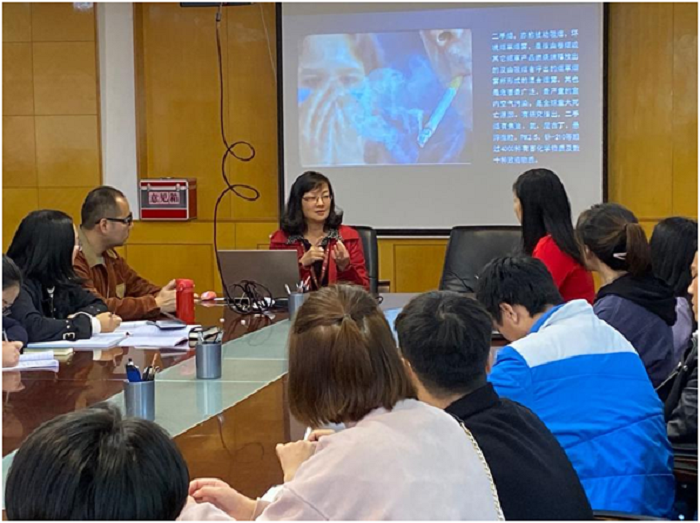在宣讲中,王瑛和学生进行提问互动,引导同学们正视吸烟危害,告知同学们要行驶拒绝二手烟的权利,为自己的健康,为校园的美化做出一份努力。