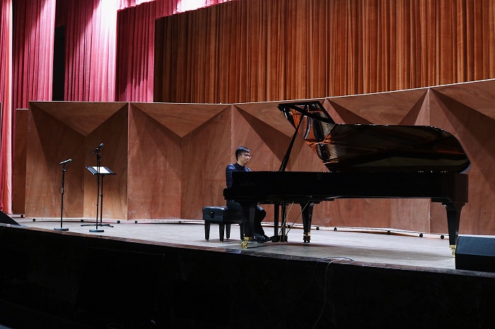 合唱团共同表演的《我的祖国》中拉开序幕。曹航弹奏了肖邦、贝多芬、莫扎特等著名音乐家的曲子,一首首乐曲极富灵动性,仿佛刻画出不同的人物形象,让精巧与大气在琴声中得到统一。曹航也和在场听众们分享了自己对于音乐的独特见解,他深入浅出地介绍了每首作品的创作信息和每位演奏者的特点,让在场的听众们在聆听每一首作品时都能和演奏者产生音乐共鸣,在音乐的殿堂中接受高雅艺术的洗礼。