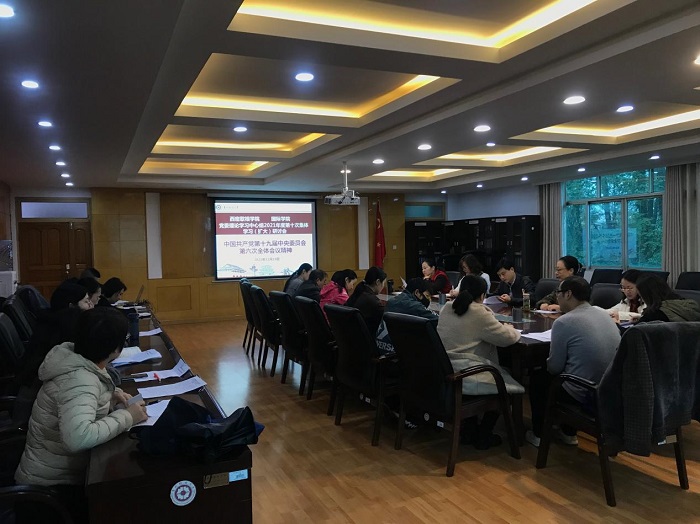 党委副书记王瑛围绕中国共产党第十九届中央委员会第六次全体会议精神,结合工作实际作重点发言。古鸿宇、李欣灿围绕中国共产党第十九届中央委员会第六次全体会议精神,结合工作实际进行了交流发言。
