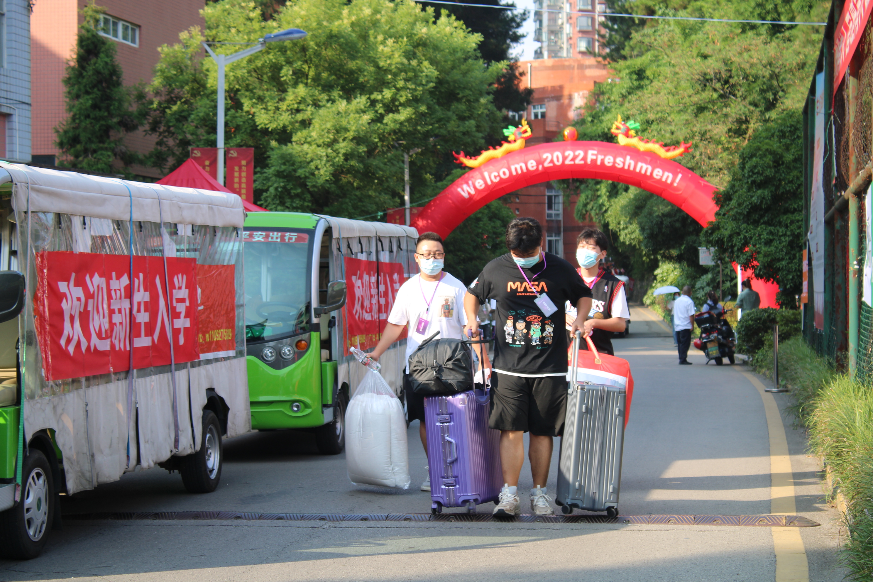 鹿冲关校区的迎新现场严格根据学校疫情防控要求,新生们在接受健康码、行程卡检查、体温检测、行李消毒后等流程后进入校园。Et足球直播