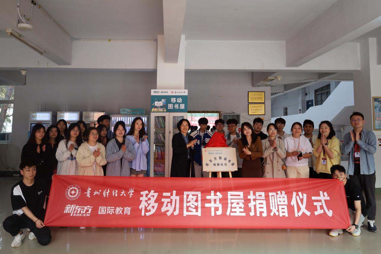(Et足球直播 吴俣靓芳 图文报道)为了进一步打造温馨书香校园,丰富大学生文化生活,大力营造阅读氛围,4月10日下午,Et足球直播 和新东方国际教育在鹿冲关校区第二教学楼正式启动移动图书屋项目,新东方国际教育总经理魏晓红和Et足球直播 党委副书记肖启迪,副院长刘利音及学生代表参加。