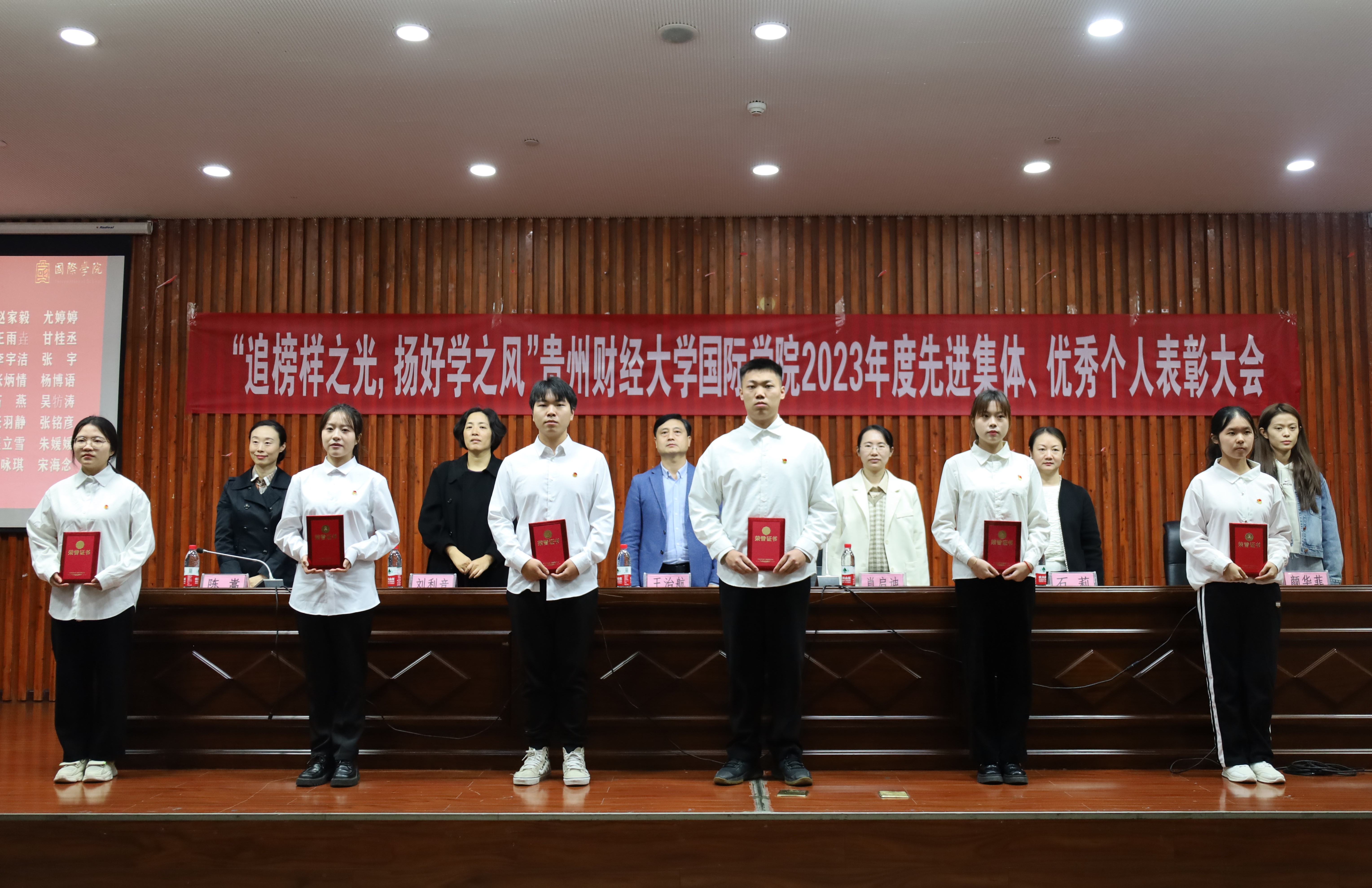 领导、老师为获奖集体和个人颁发荣誉证书。这些荣誉不仅是对同学们过去一年努力奋斗的肯定,更是对他们未来发展的鼓励。