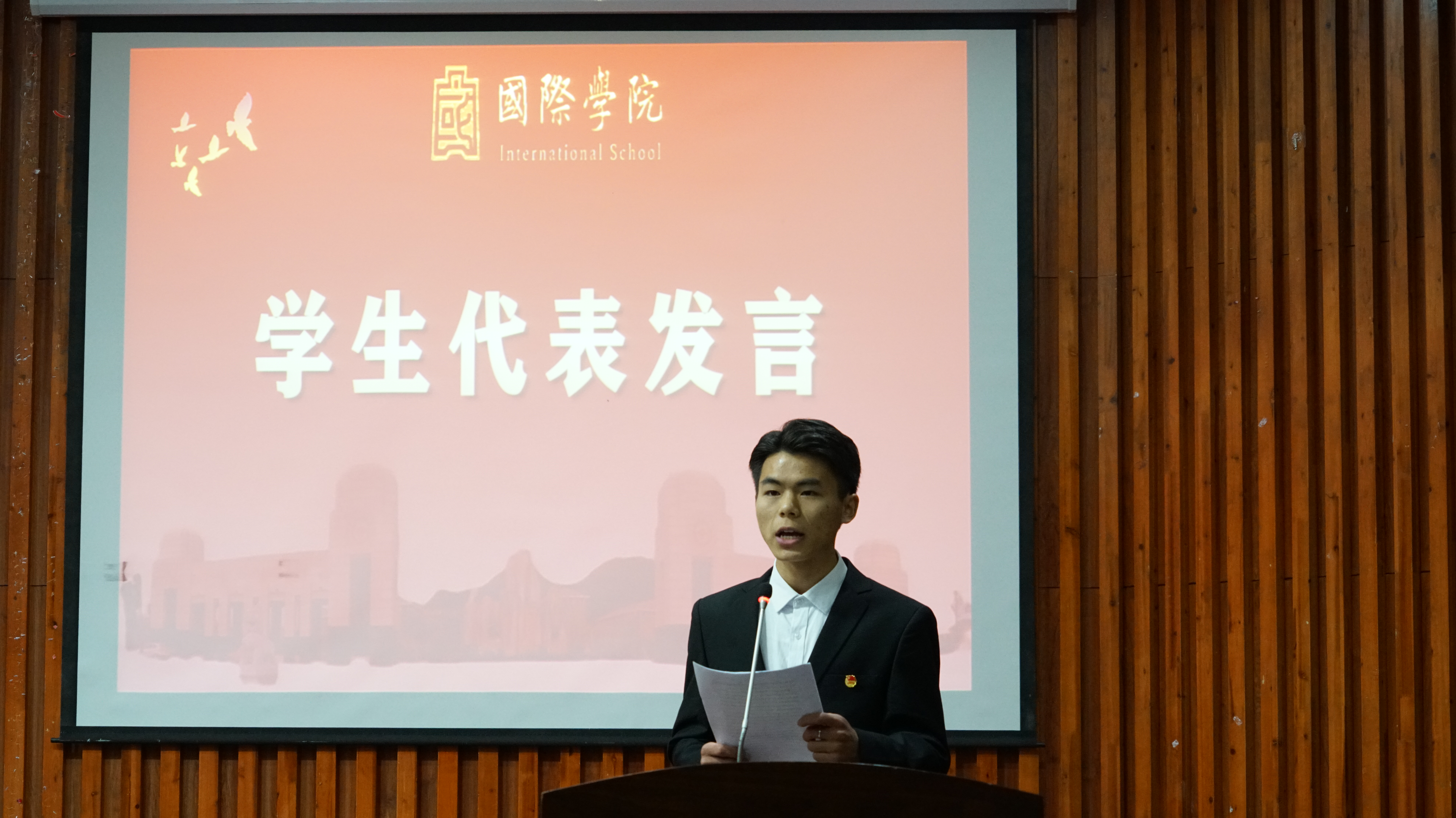 向受表彰的先进集体和先进个人表示热烈祝贺,并对同学们提出三点希望:一是希望同学们胸怀“国之大者”,树立鸿鹄之志,做勇挑重担的“接班人”;二是希望同学们扬青春之帆,坚定思想意志,做劈波斩浪的“追梦人”;三是希望同学们走奋进之路,练就过硬本领,做行胜于言的“实干家”。