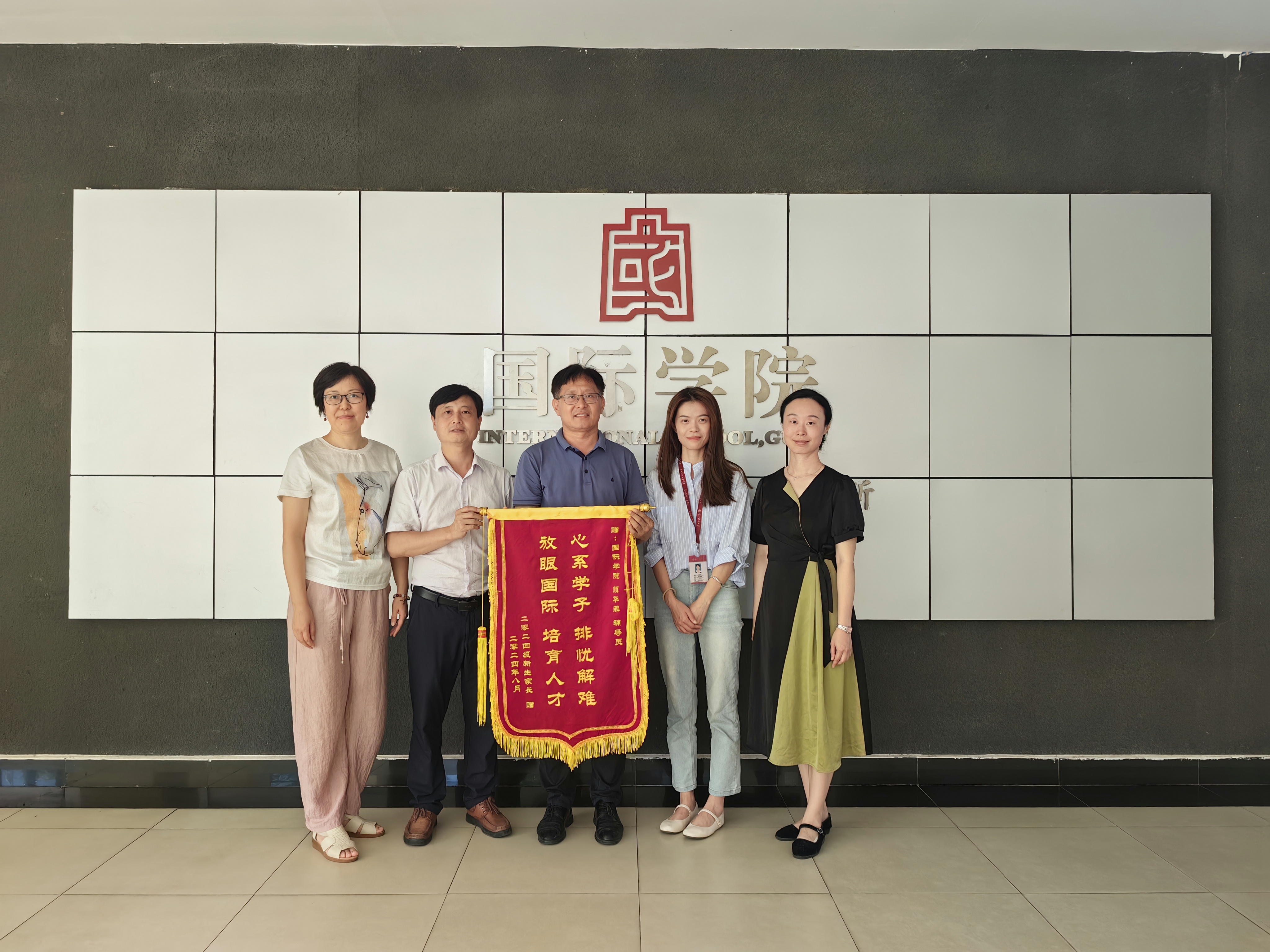 领导和老师的关心关怀下,学生住宿问题得到了妥善的解决。事后,新生家长满怀感激之情精心制作的锦旗,上面写着“心系学子,排忧解难。放眼国际,培育人才”,专程来到Et足球直播