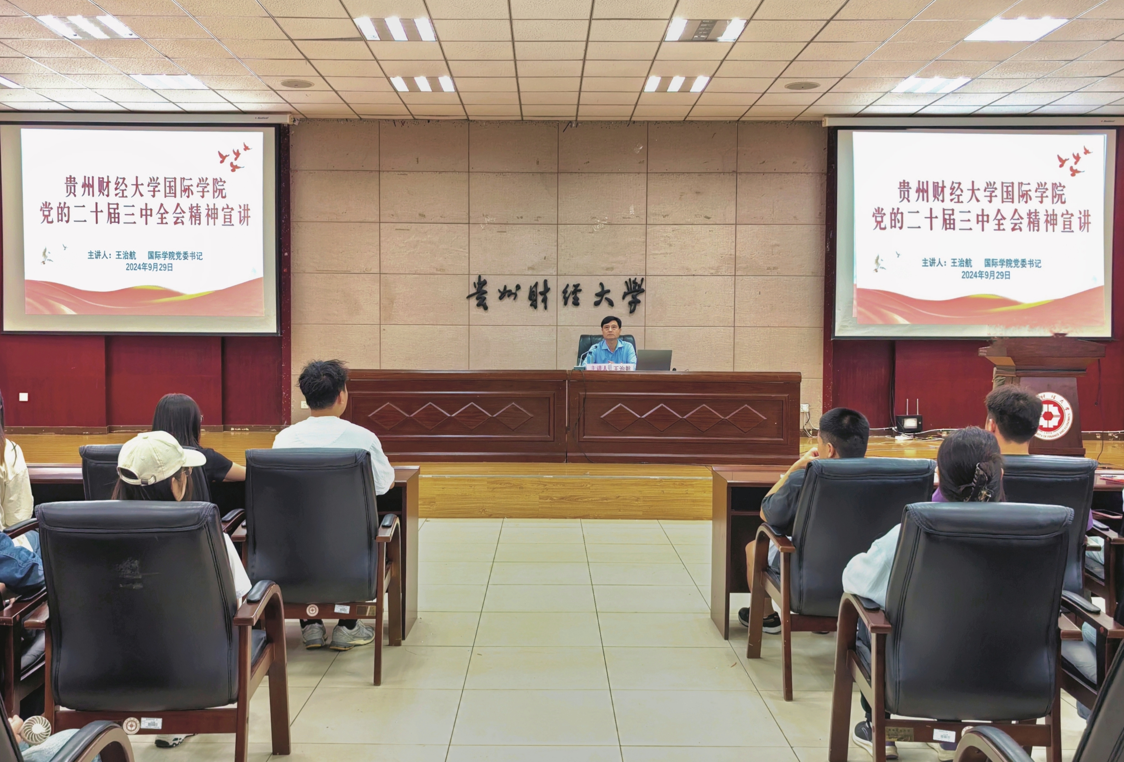 (Et足球直播 黎子豪 杨仕豪 报道|摄影 王琴 罗紫晗)为深入学习宣传贯彻党的二十届三中全会精神,9月29日下午,Et足球直播 在正德楼114会议室开展学习贯彻党的二十届三中全会精神宣讲报告会,Et足球直播 党委书记王治航为师生作宣讲报告。Et足球直播 党委副书记古鸿宇、各党支部书记、师生党员、党外人士参加。报告会由古鸿宇主持。