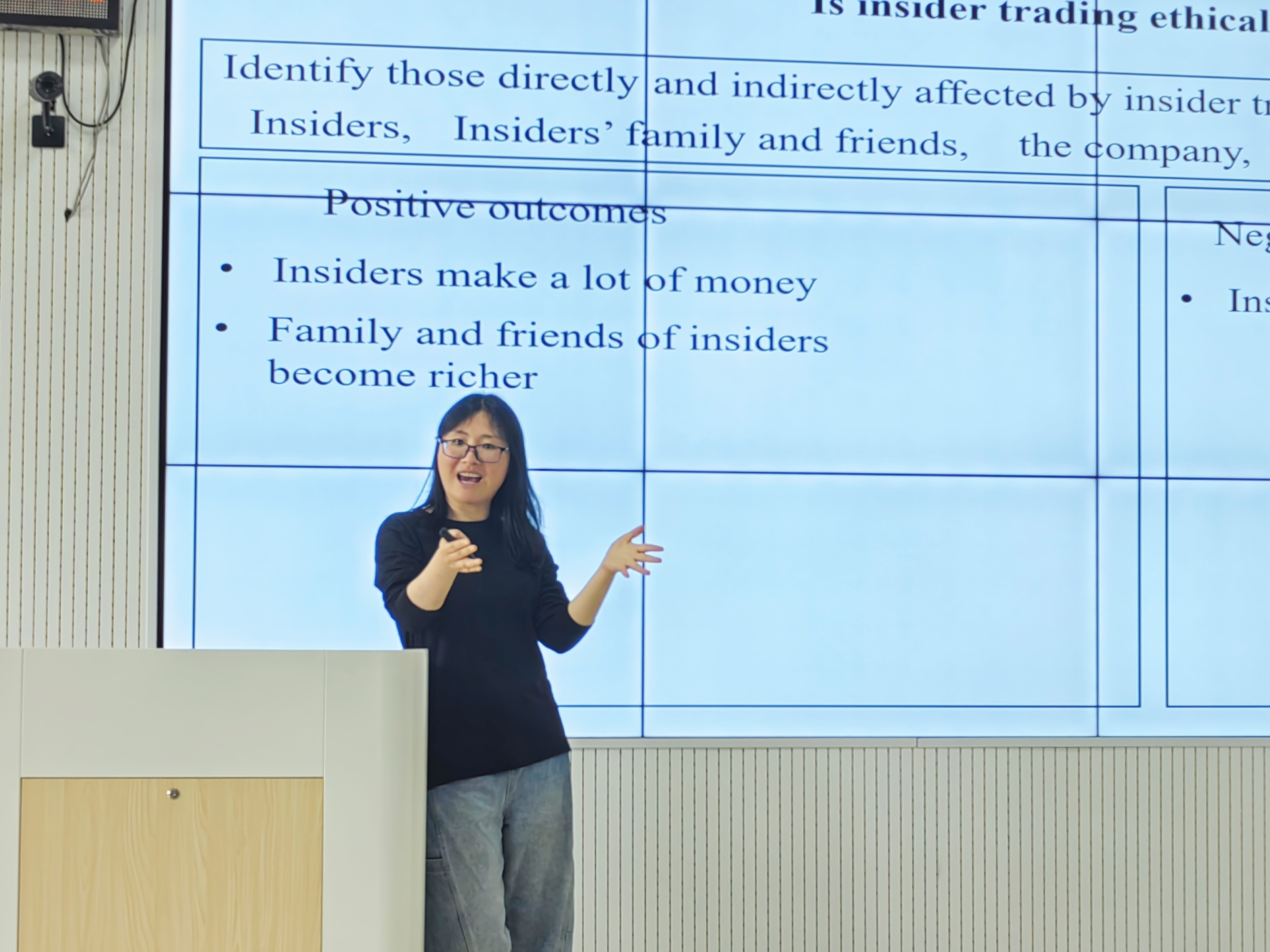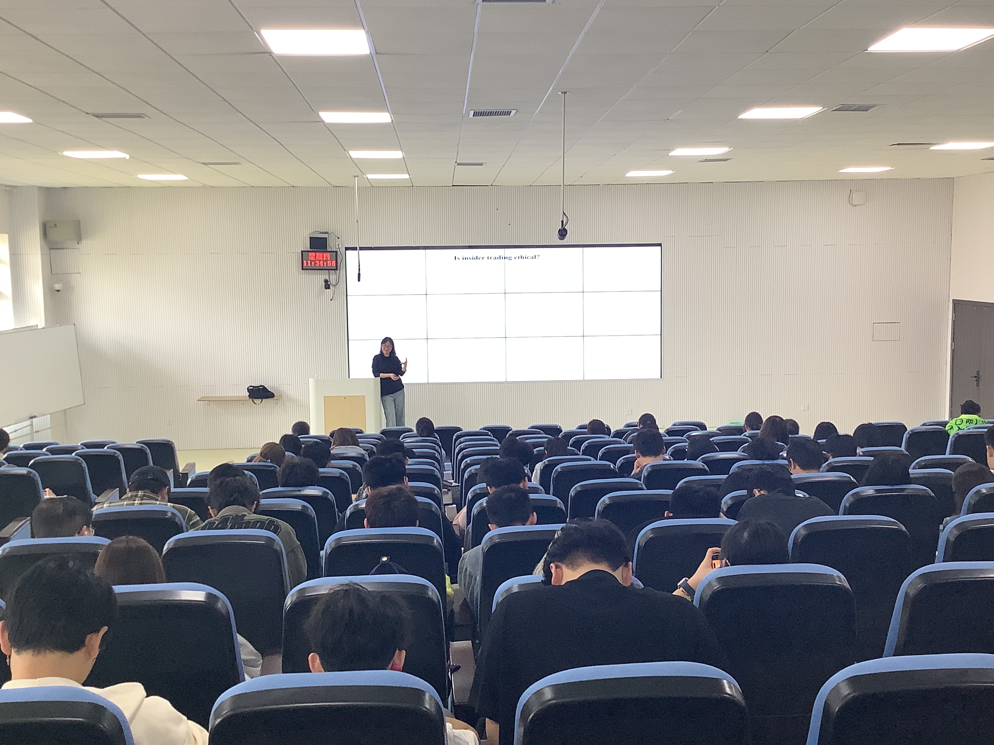 公开课上,Yuan Li博士系统介绍了金融伦理的基础概念,深入浅出地探讨了金融领域中的伦理困境与职业道德规范。她通过生动的理论阐述和案例分析,引导学生们思考在金融实践中如何平衡个人利益与职业道德,强调理性决策、道德原则与实践的结合在金融行业中的重要性。