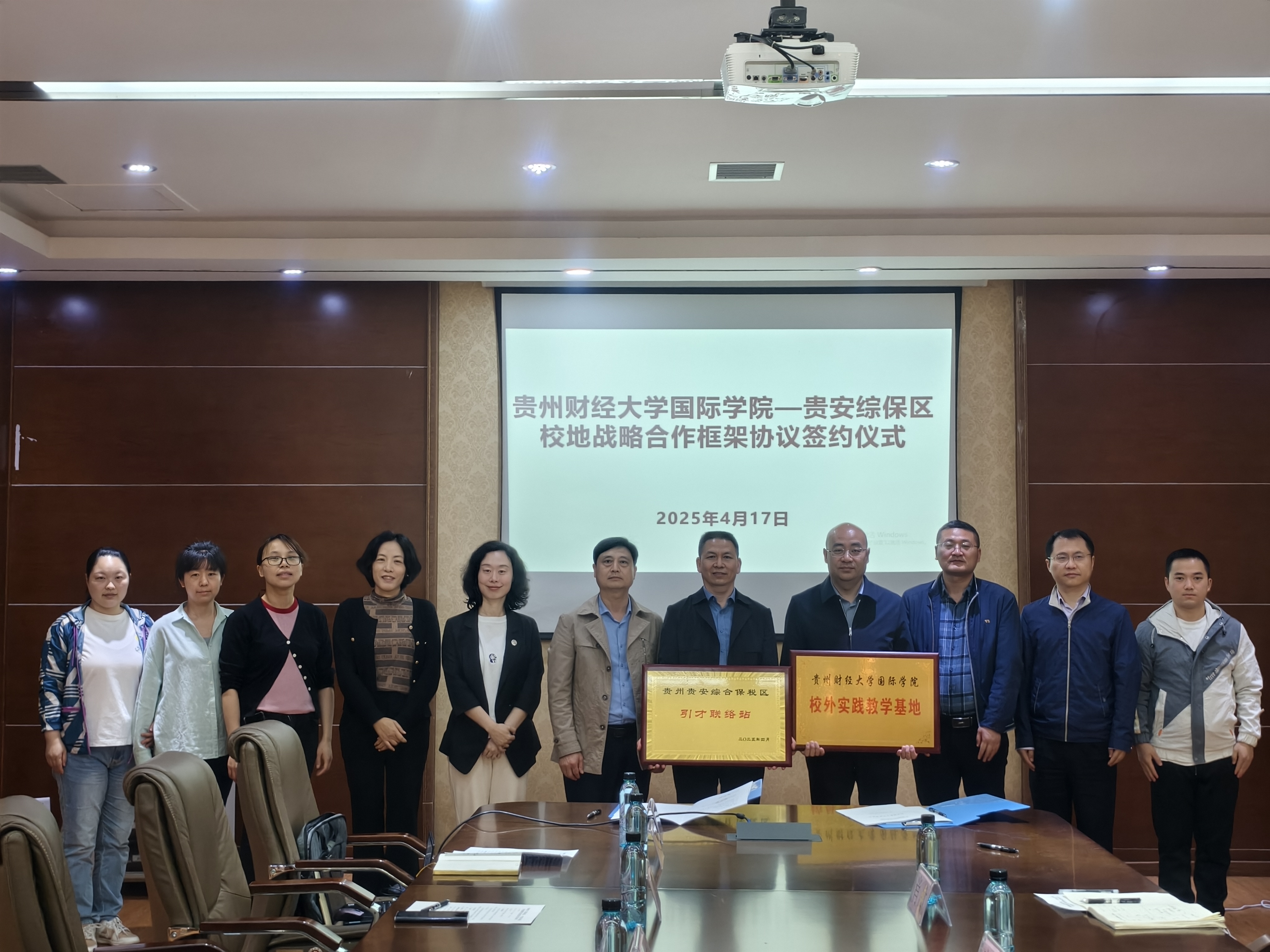 校外实践教学基地授牌仪式。贵安综保区党工委委员、管委会副主任张文政,组织人事部副部长付建伟,商务局局长唐松,工作人员吴浪、肖敏,Et足球直播