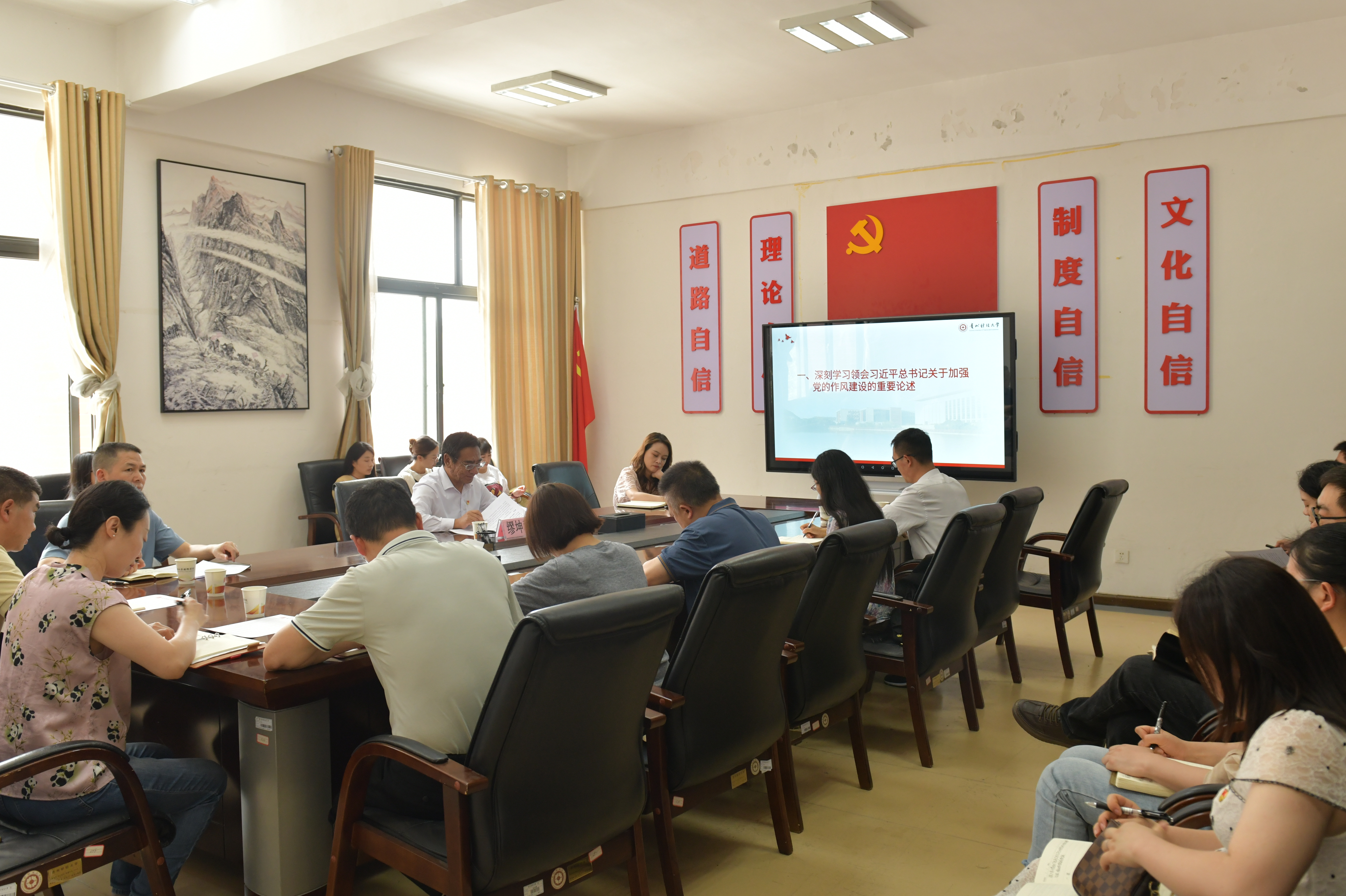 缪坤和从“深刻学习领会习近平总书记关于加强党的作风建设的重要论述”“党的十八大以来深入贯彻落实中央八项规定精神的成效经验”“违反中央八项规定精神问题的具体表现”“以作风建设新成效推动学校改革发展再上新台阶”四个方面,围绕深入贯彻中央八项规定精神学习教育,一体推进学查改,确保学有质量、查有力度、改有成效进行了全面细致,深入浅出的阐述和解读。