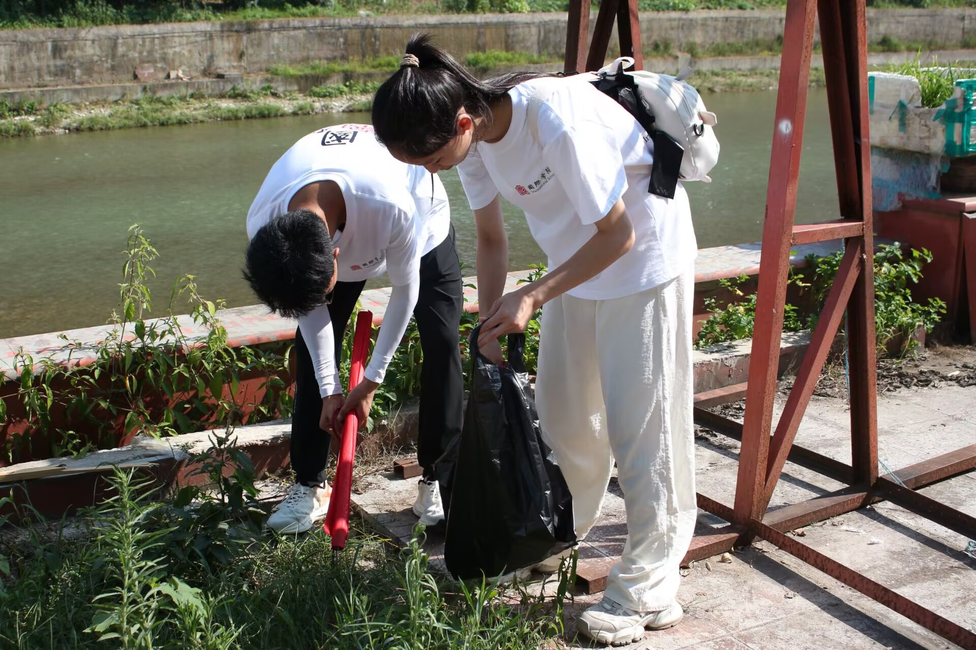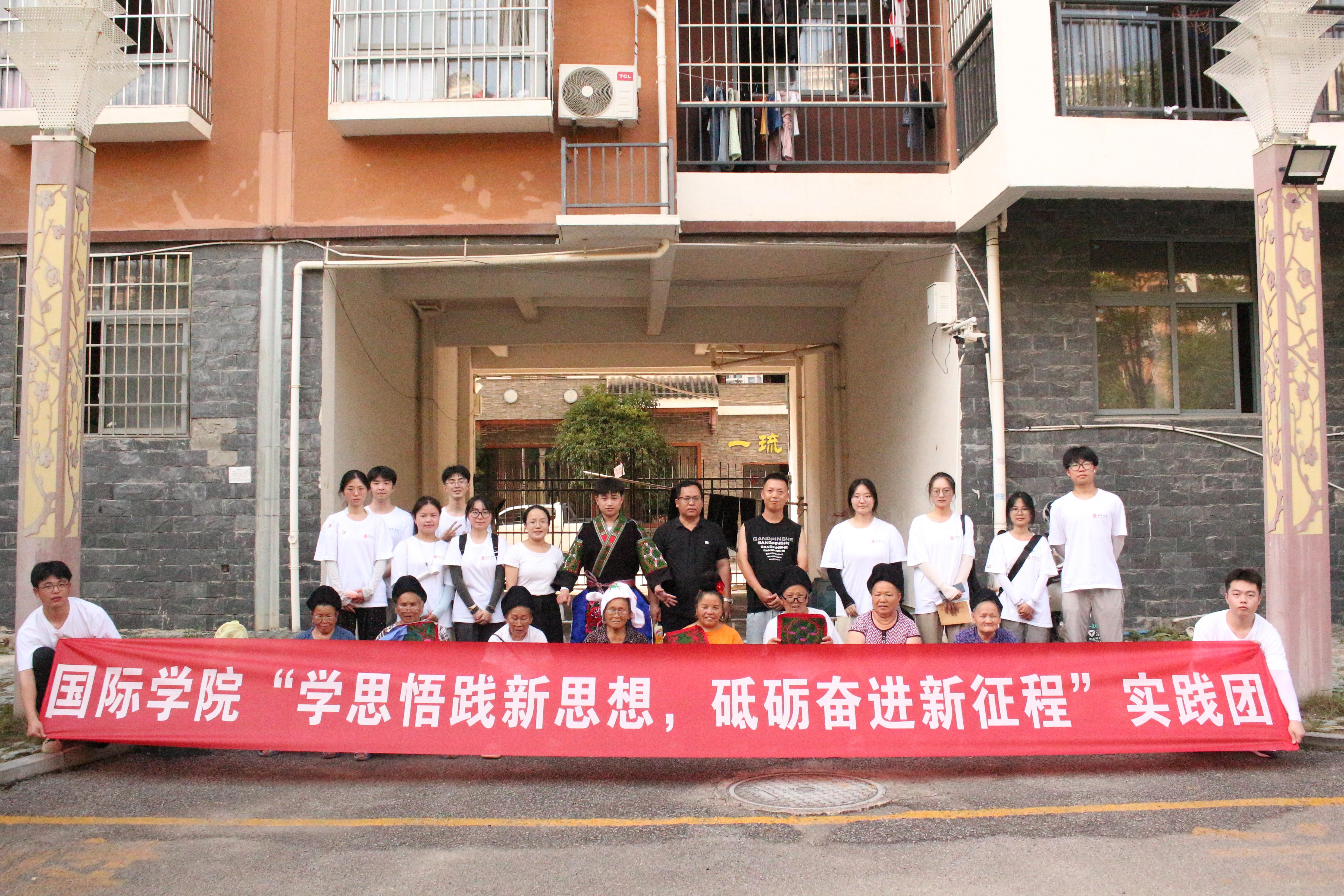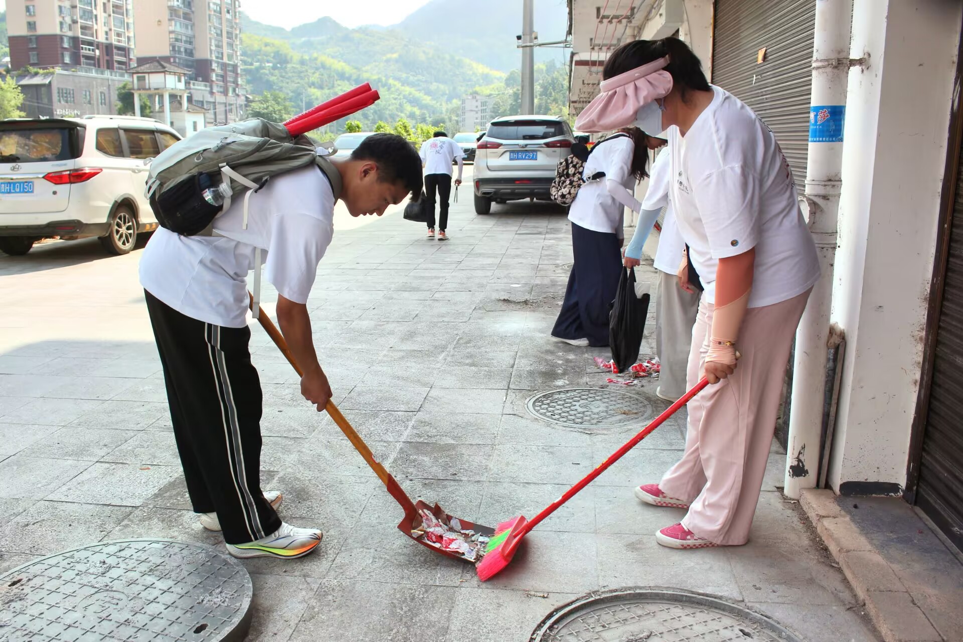 “助力乡村振兴,共建美丽乡村”实践团在苗家湾社区开展环境整治行动。清理乱堆乱放、参与垃圾分类,骄阳下的汗水换来了社区环境的整洁如新。与此同时,队员们化身“安全宣传员”,向社区群众讲解防溺水、禁毒防艾知识,还学用“蒙乌(您好)”“农聂啦(吃饭了吗)”等苗语短语拉近和居民的距离,让政策宣讲更有温度。