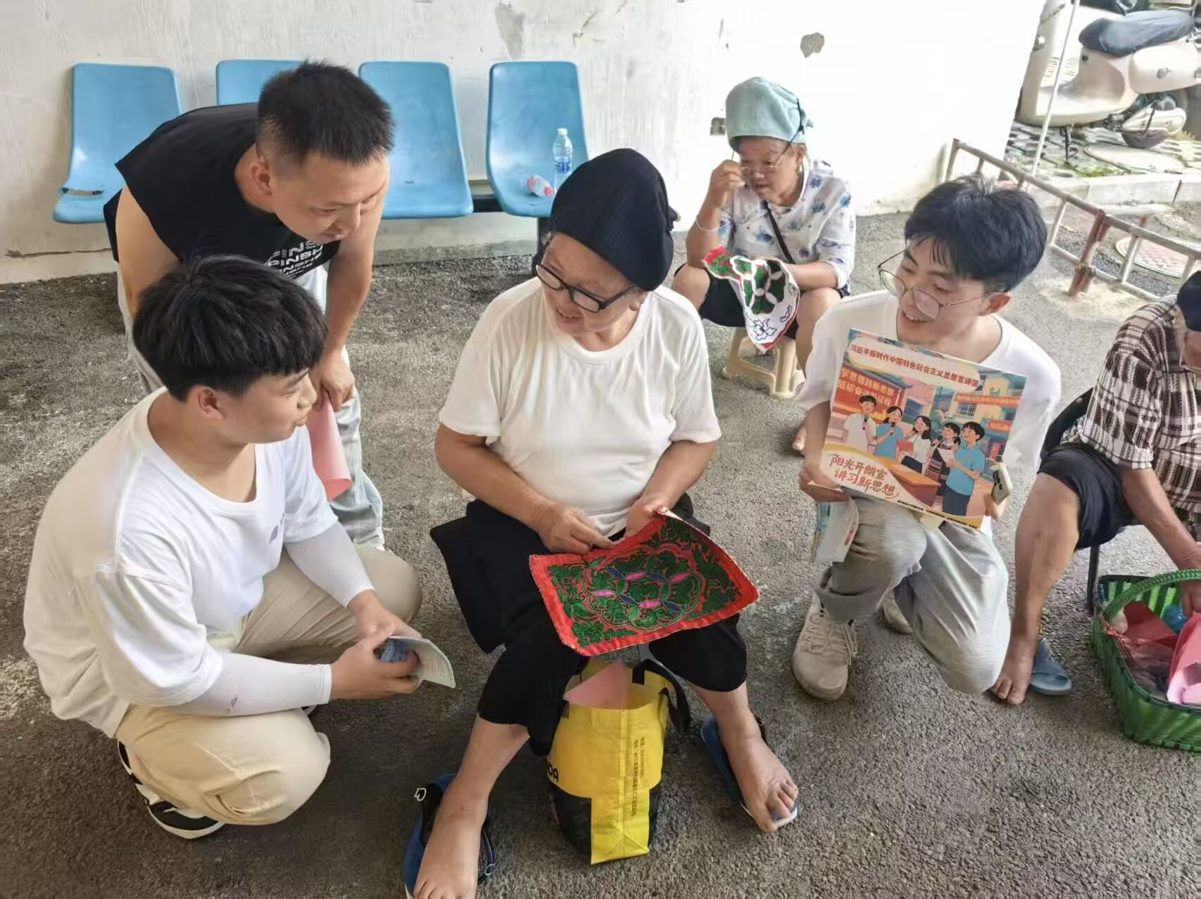 “同心共筑中国梦,民族团结一家亲”实践团在苗疆姊妹广场宣讲民族政策,在台江非遗展览馆感悟“银冠上牡丹纹与蝴蝶纹共生”的融合智慧。跟着苗族阿婆学苗绣、听苗族大叔讲邻里互助故事,文化传承的接力棒在青春手中传递。