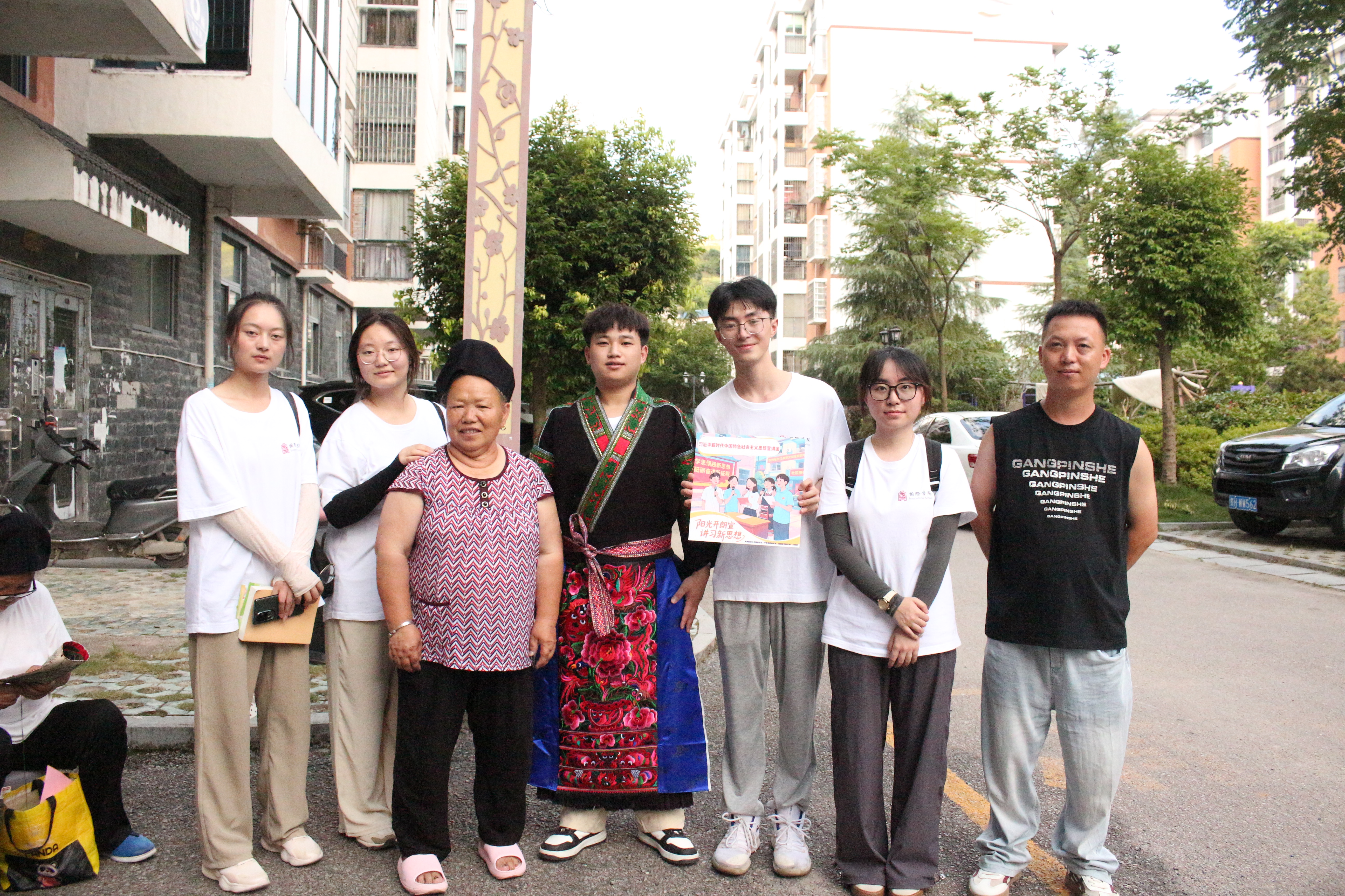 “青春作笔书乡韵,实干为墨绘振兴”实践团深入社区,开展入户调研,推进移风易俗宣传工作。他们结合中华优秀文化传承,学习苗绣技艺,并向社区群众发放宣传单,倡导“婚事新办、丧事简办”,让文化传承与文明实践相辅相成。