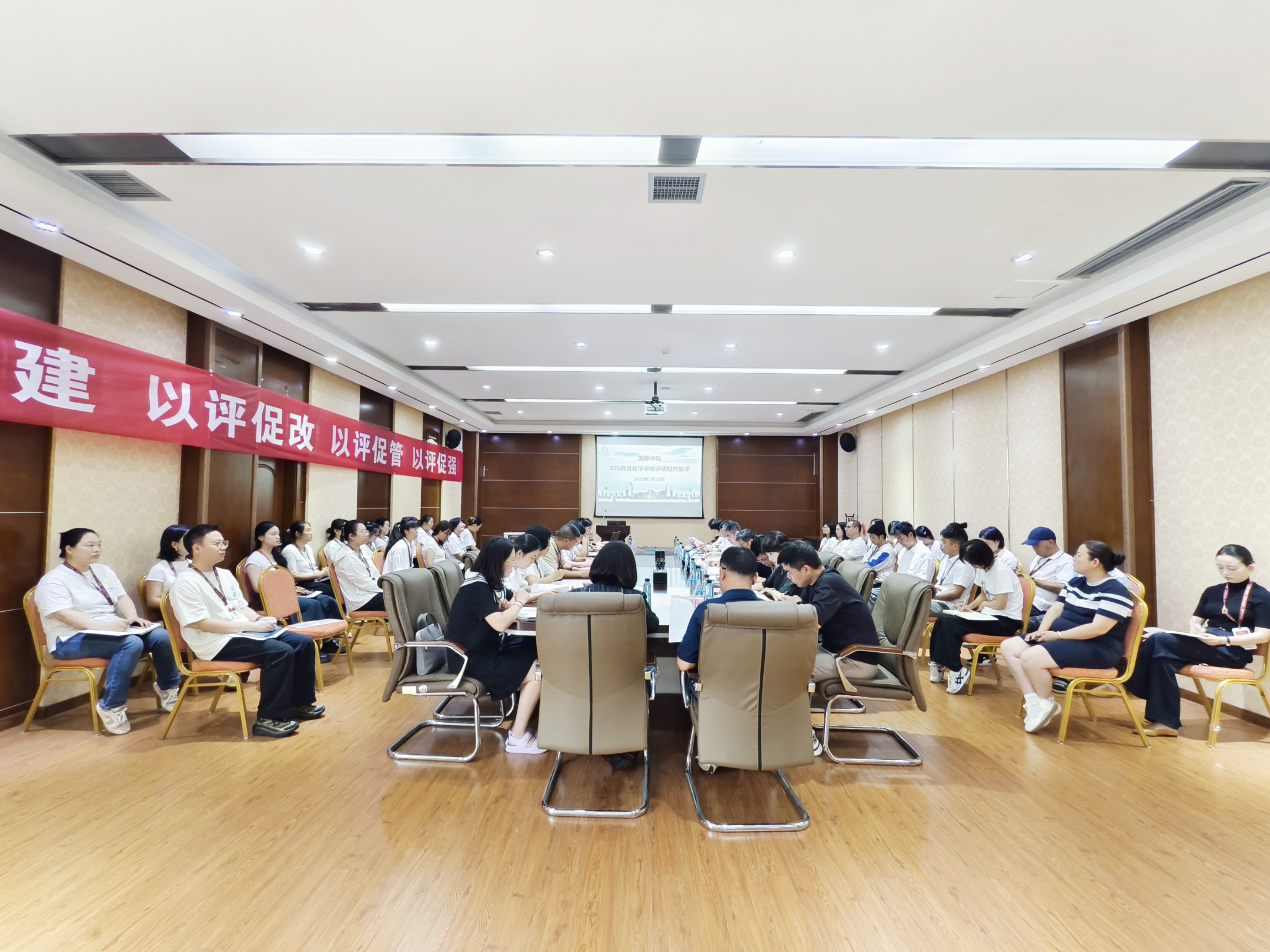 本科教育教学审核评估校内复评会议在正德楼一楼贵宾厅召开。副校长、校党委委员杜剑出席会议并讲话。会议邀请了贵州民族大学建筑工程Et足球直播