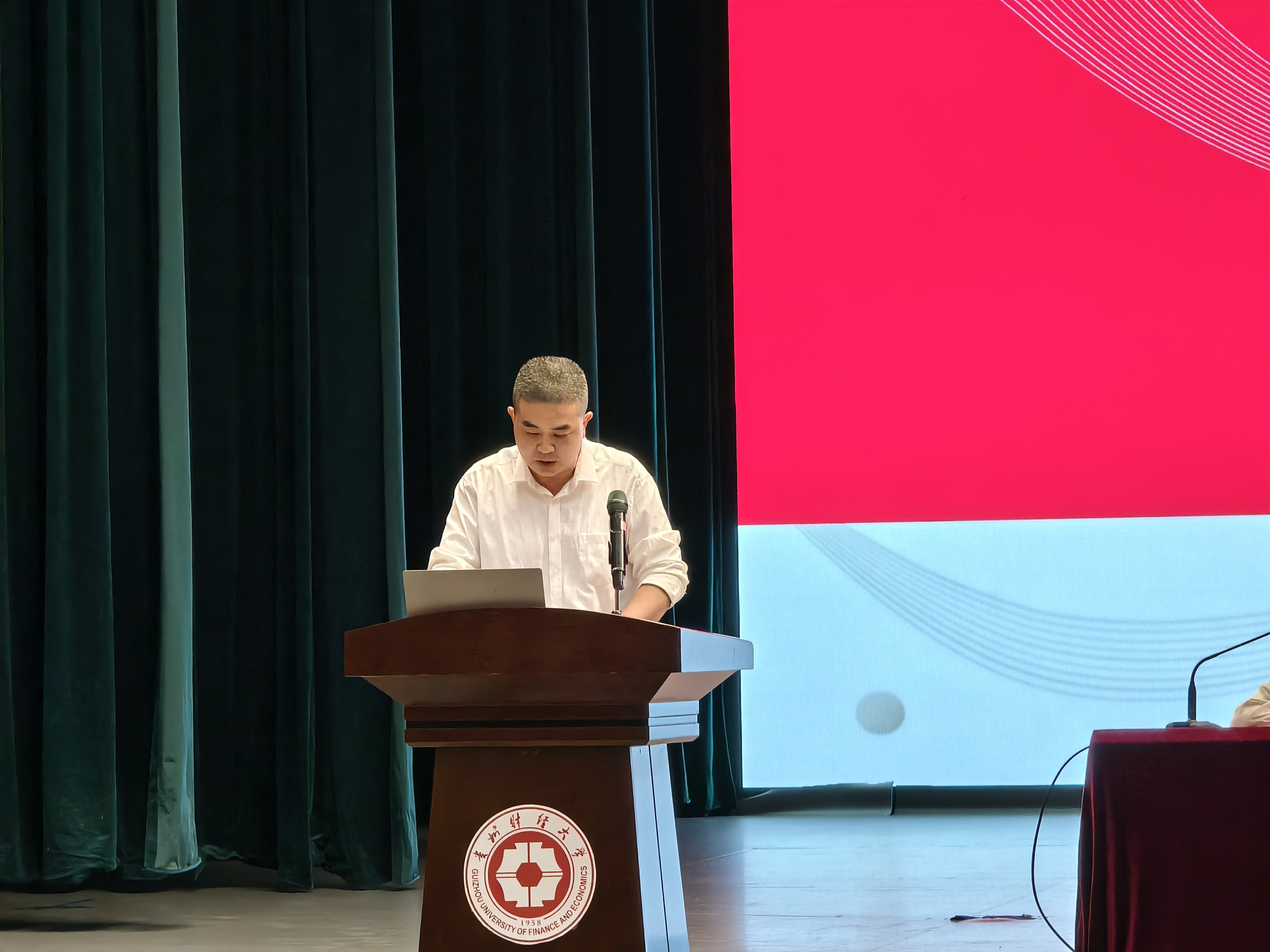 陈嵩为新生解读了校纪校规及《学生手册》中的重要内容,突出学校学风严谨和注重日常管理等特点,强化学生的纪律意识。希望同学们严谨治学、脚踏实地,为大学四年的学习打下坚实的基础。