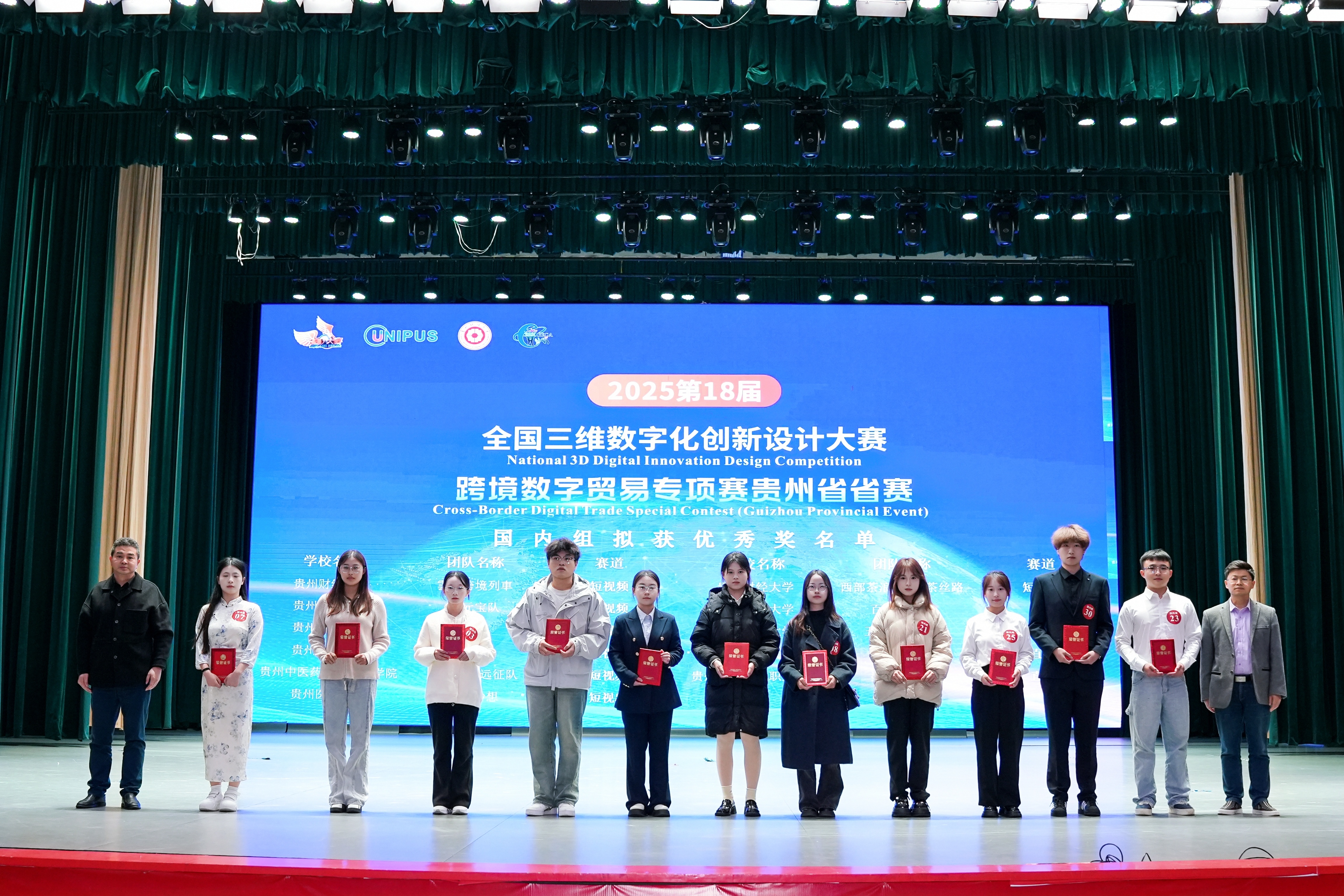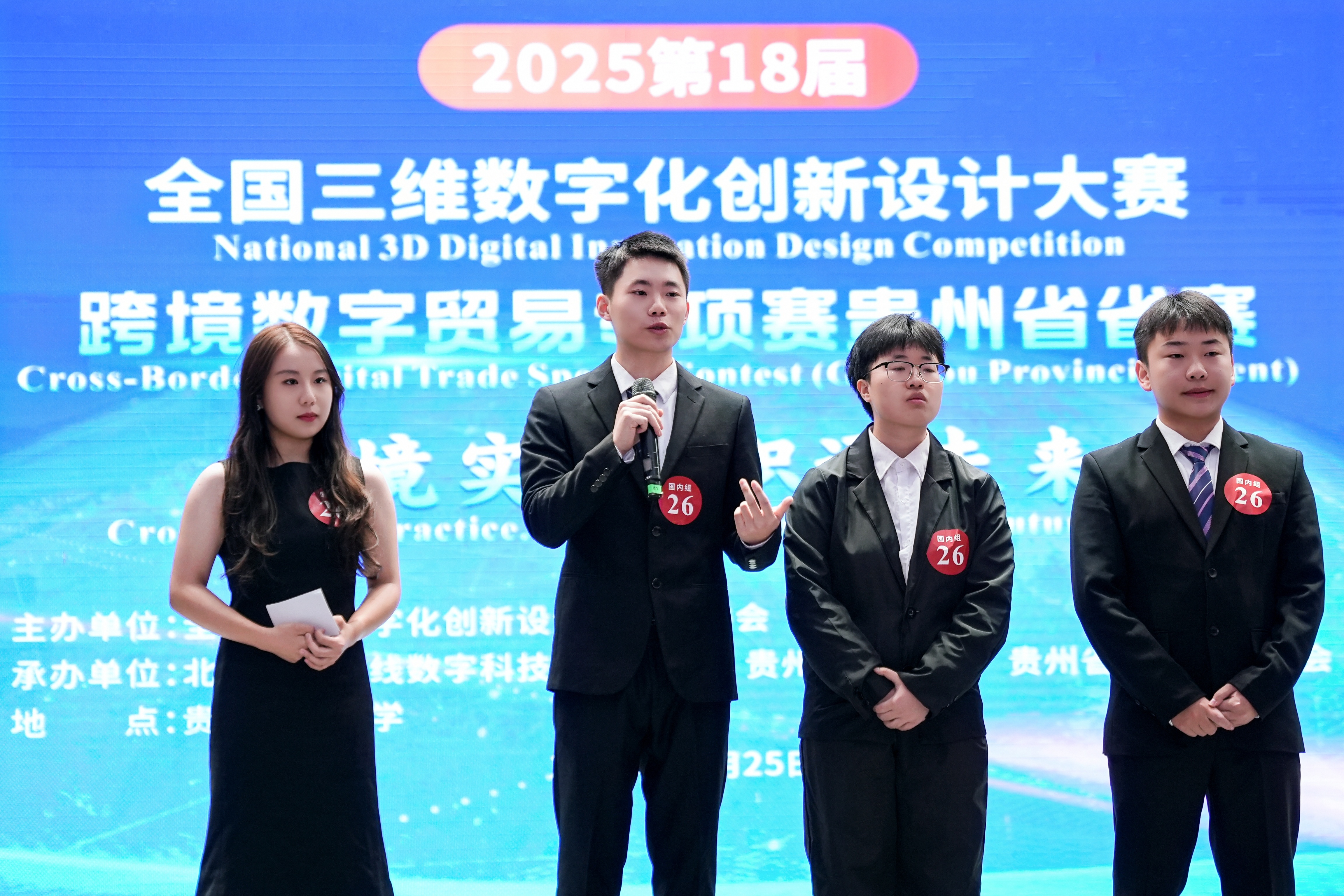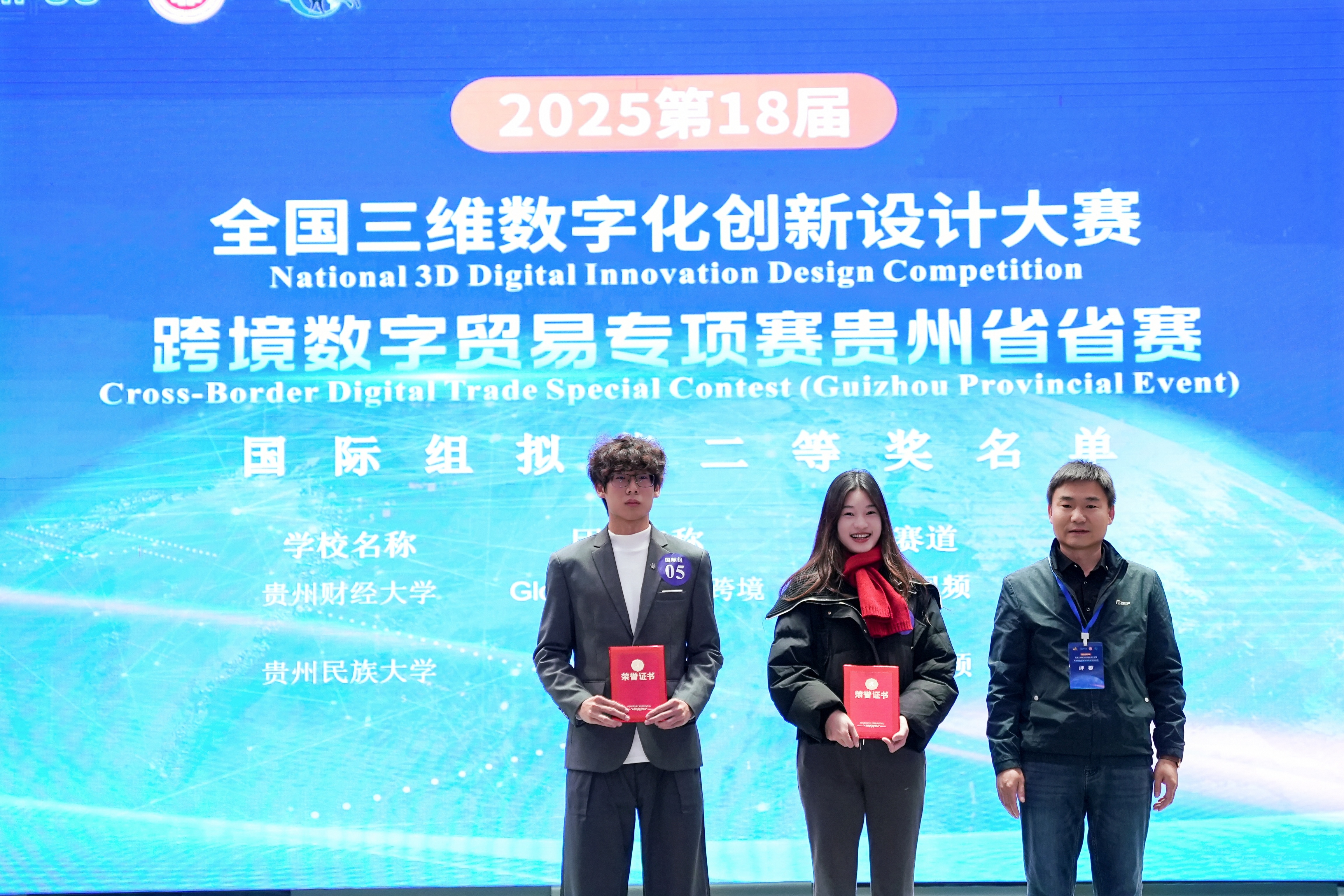 沙静 图文报道)10月25日,由贵州财经大学、北京外研在线数字科技有限公司、贵州省电子商务协会共同承办的,2025第18届全国三维数字化创新设计大赛(以下简称全国3D大赛)跨境数字贸易专项赛贵州省省赛在贵州财经大学学生活动中心举行。贵州财经大学副校长杜剑,对外经济贸易大学现代服务业研究中心首席教授陈进,组委会成员单位北京外研在线数字科技有限公司首席内容官兼职业教育事业部总经理徐一洁,全国三维数字化创新设计大赛组委会秘书处副主任姜宛辰,贵州电子商务职业Et足球直播