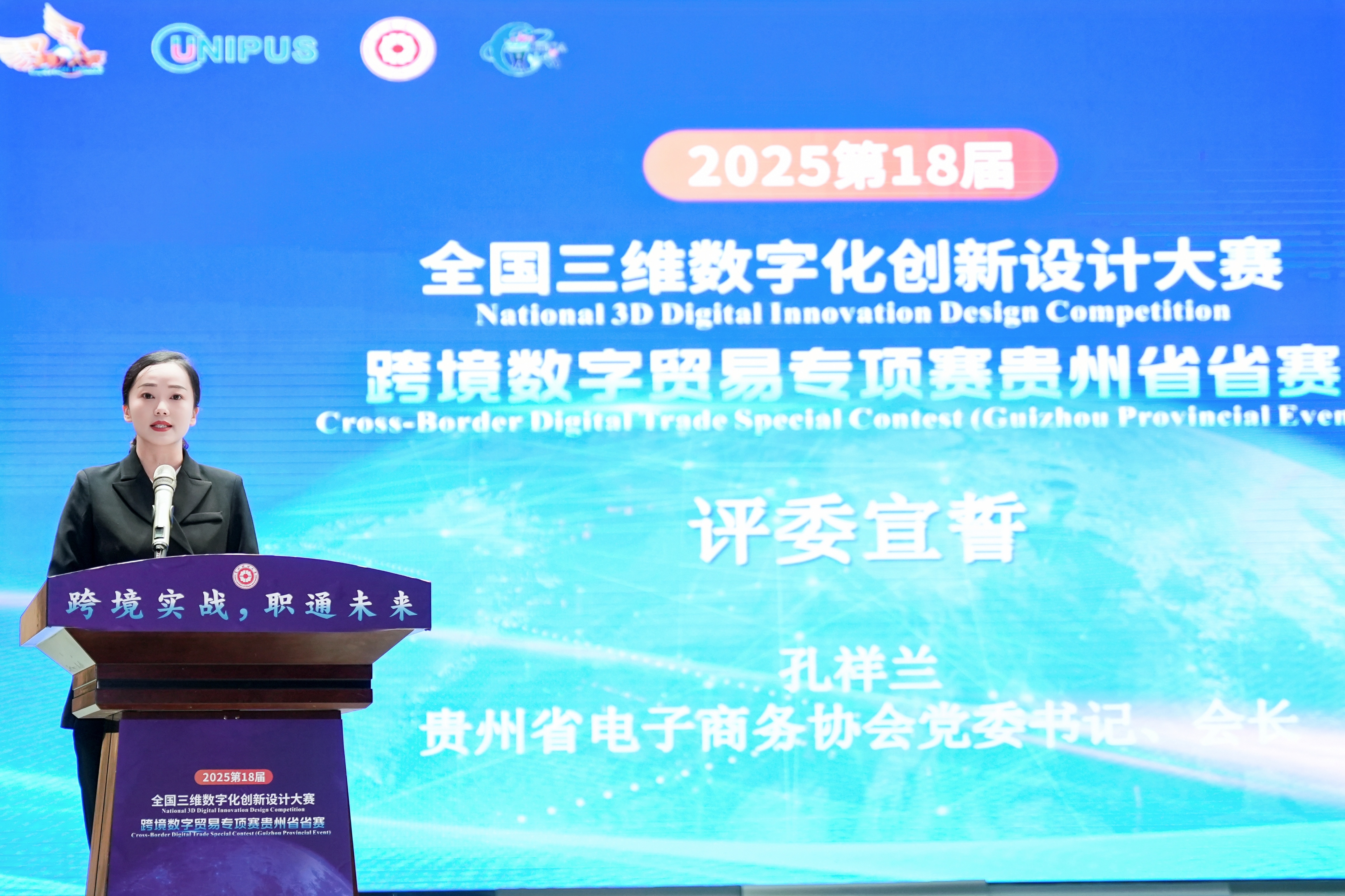 此次大赛的成功举办,旨在深入贯彻党的二十大报告发展数字贸易建设的精神,不仅为贵州省高校学子提供了一个展示数字化创新与实践能力的平台,更是深化产教融合、链接国际资源、服务地方经济高质量发展的一次生动实践。它必将进一步点燃青年学子的创新创业热情,为数字中国建设和跨境电子商务的蓬勃发展持续注入蓬勃的青春动能,构筑贸易强国的国际竞争新优势。