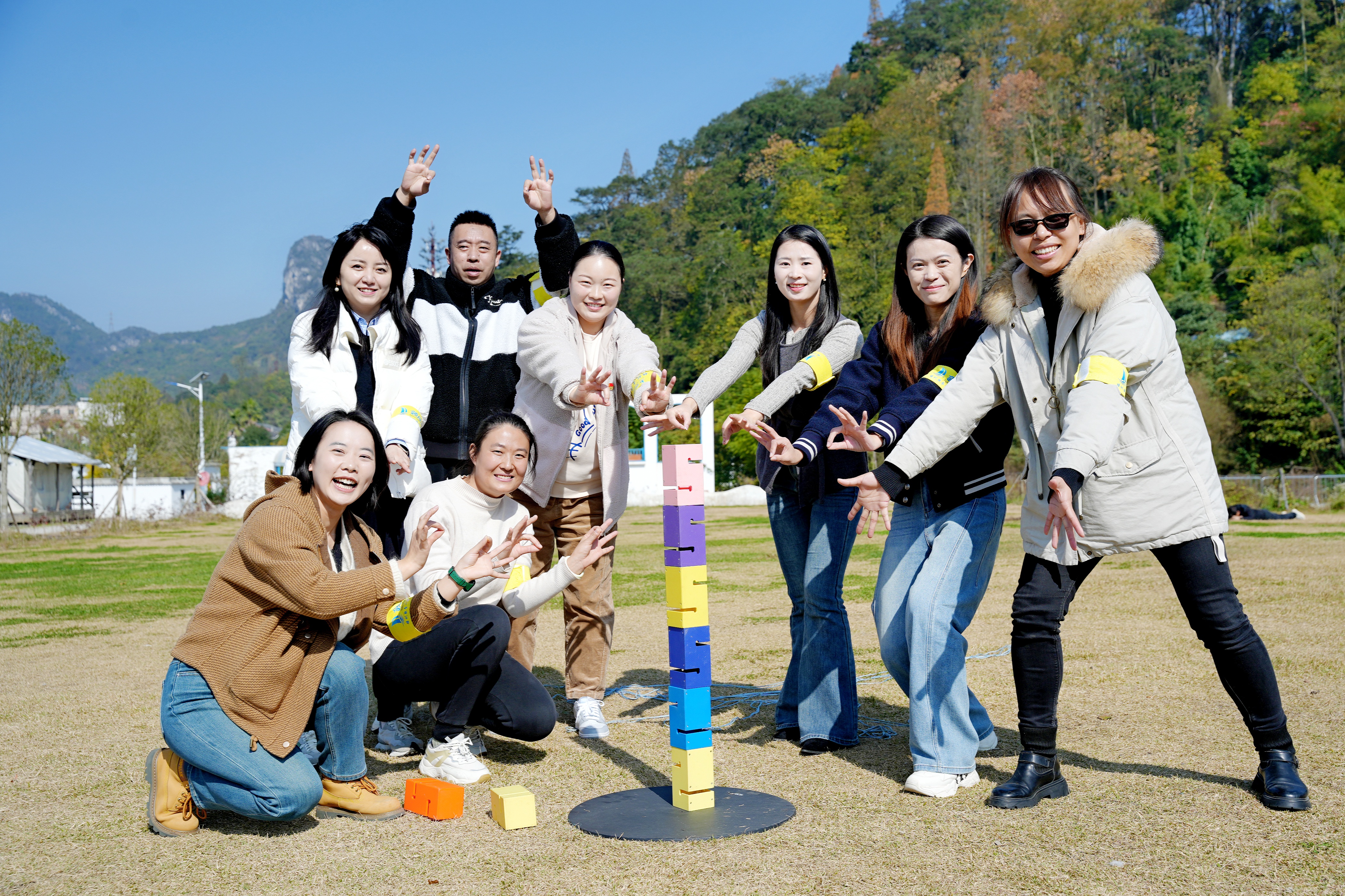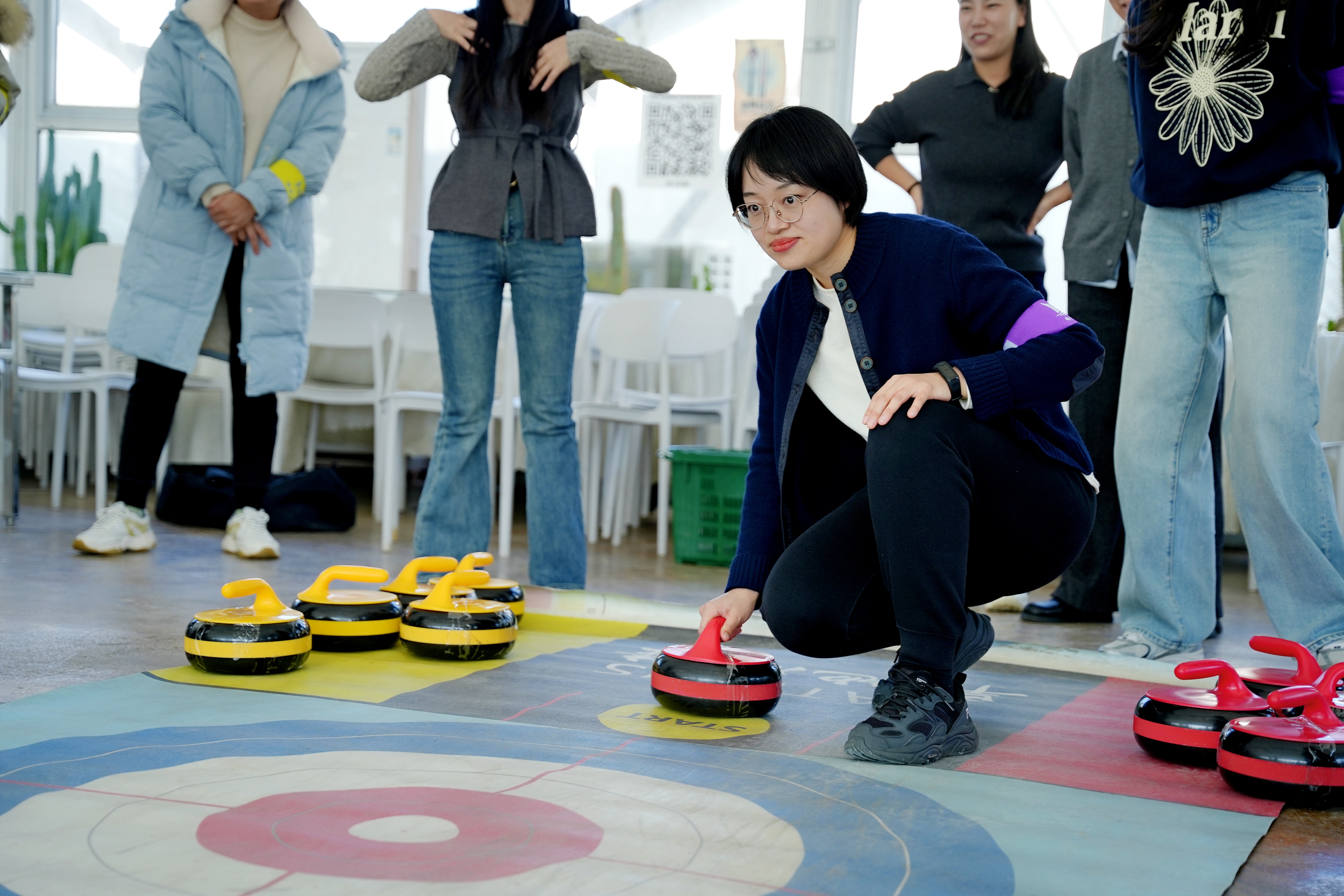 活动在 “破冰行动” 中拉开帷幕,教练通过生动讲解活动意义、组织团队组建与展示,迅速点燃现场氛围,让大家快速建立团队归属感,同时明确培训纪律、安全及环保要求。随后的 “合力筑塔” 项目中,各团队成员拉紧绳索、协同控制塔钩,精准搭建模型,在比拼速度的过程中深化协作意识;“冰壶争霸赛” 则以旱地冰壶为载体,教职工们通过策略讨论与战术配合,或精准投掷占位,或巧妙击出对方冰壶,在欢声笑语中提升团队默契,深刻体会 “团队共赢” 的意义。