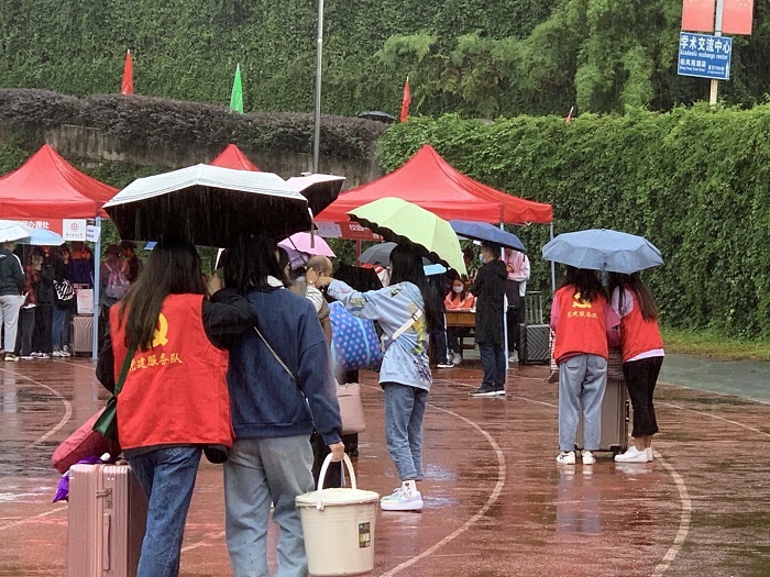 细雨绵绵下,学生党员志愿者们都热情高涨,将无私奉献、吃苦耐劳的精神进行到底,引导新生办理报到手续,帮助新同学搬运行李物资、安排住宿,耐心仔细地为新生解答疑惑,每一名党员志愿者都充满热情和活力,践行了党全心全意为人民服务的宗旨。