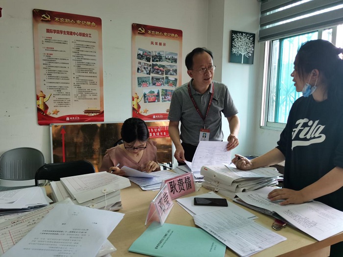 党委书记陈毕生以及校党政办副主任王治航的带领下,参会人员以查代训,对2020届毕业生党员档案进行为期一周的交叉检查。