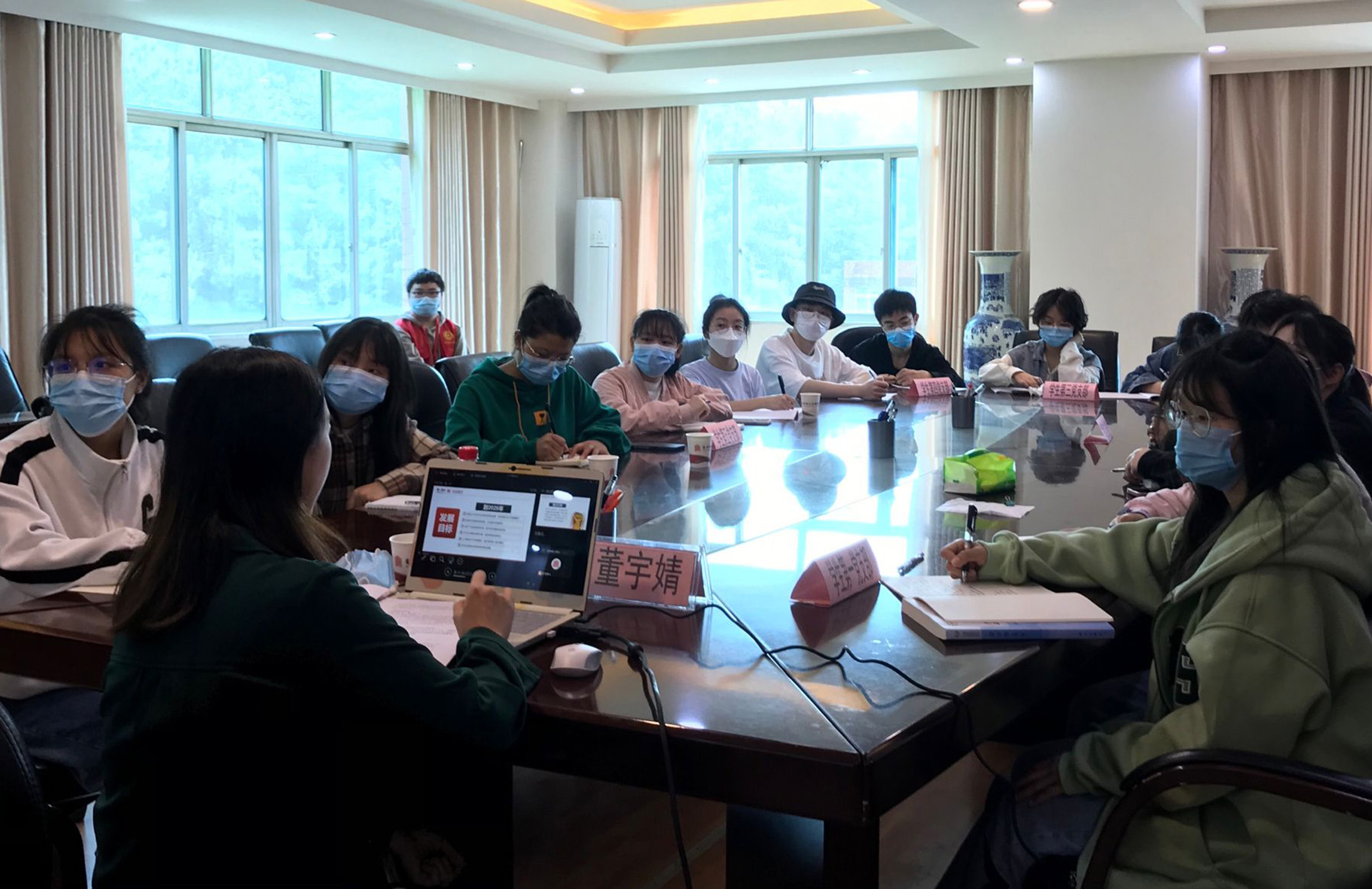学生第二党支部书记董宇婧主讲,学生党建工作中心及2022年全体春季入党积极分子培训班学员参加。、