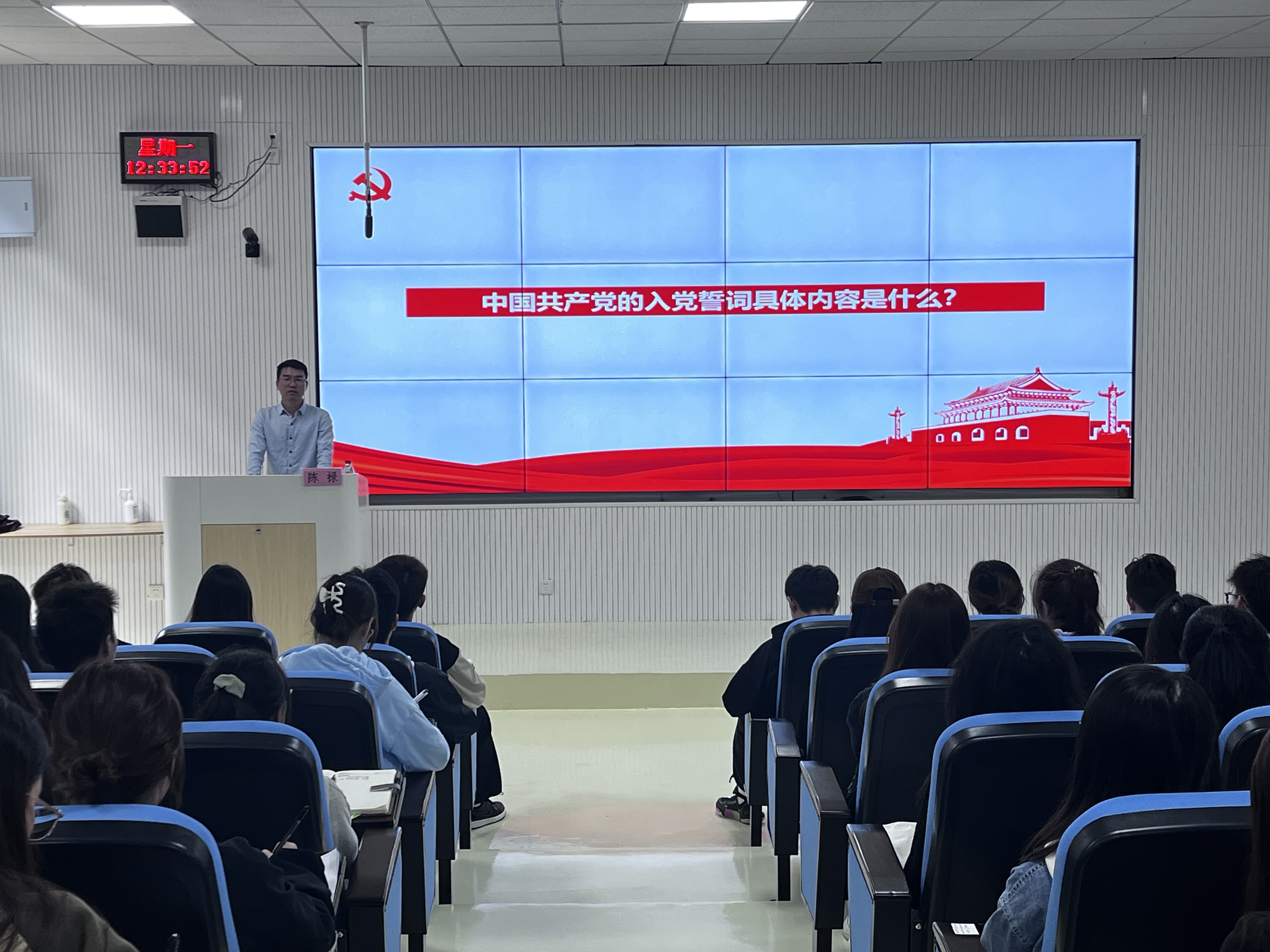 党校在乐学楼101教室开展2023年秋季入党积极分子“中国共产党为什么能”专题党课。校党委组织部组织科副科长陈禄主讲,培训班全体学员参加。