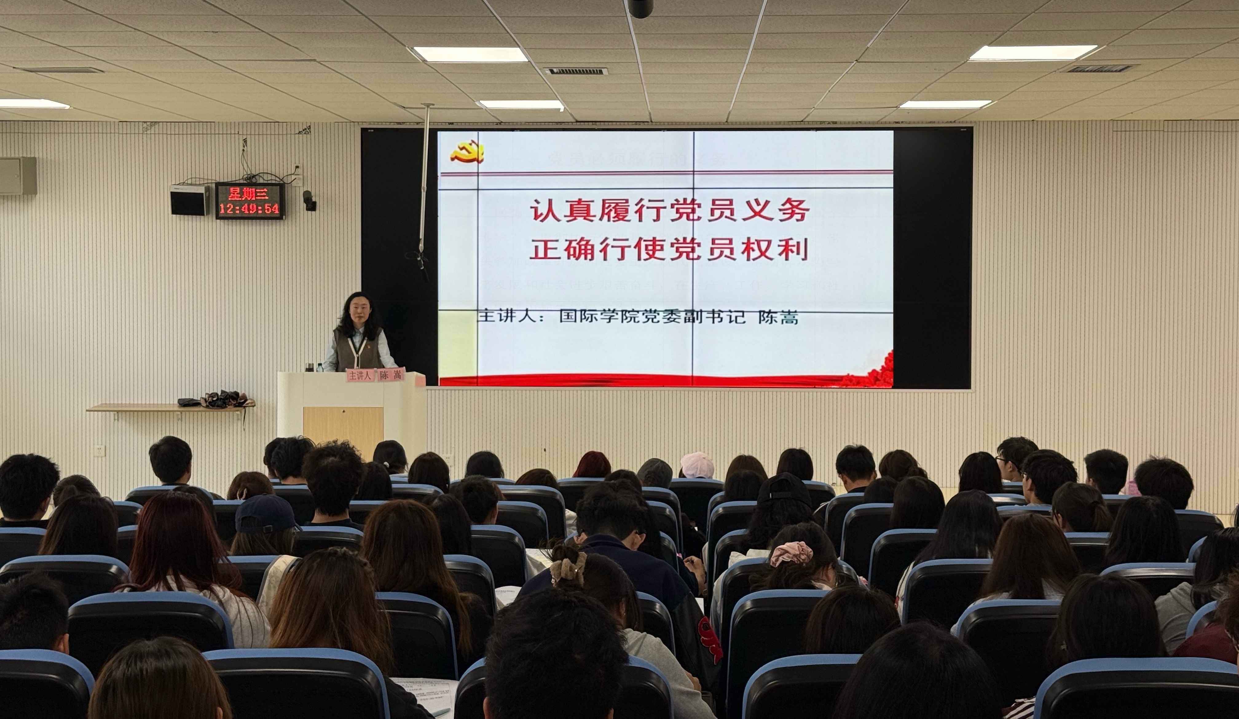 党委副书记陈嵩在乐学楼102教室为2025春季入党积极分子及支部党员作《认真履行党员义务,正确行使党员权利》专题党课。