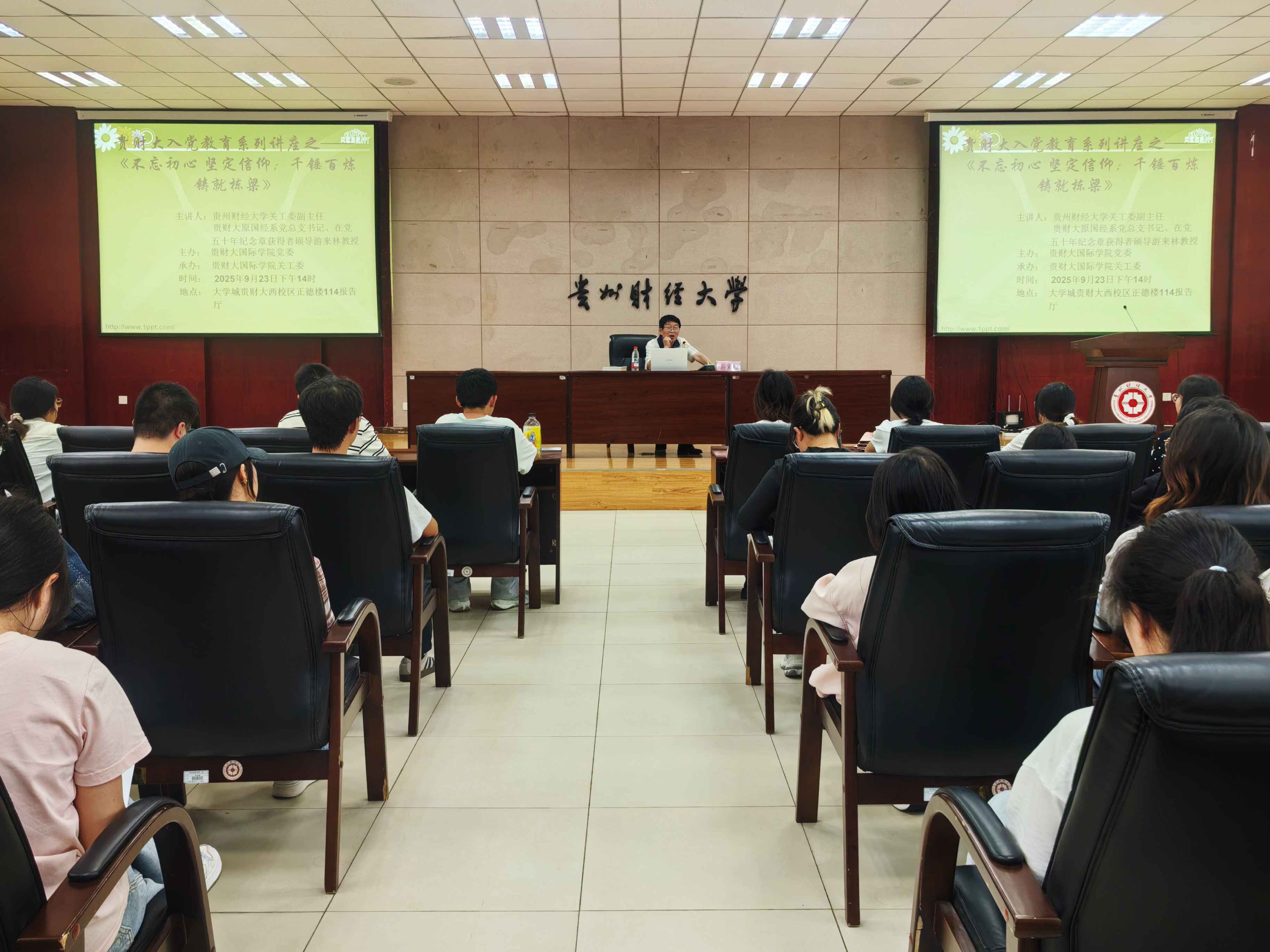 吴尉铖 报道|摄影 李静茹 魏璇伊)9月23日,贵州财经大学关工委副主任游来林教授在正德楼114报告厅为Et足球直播