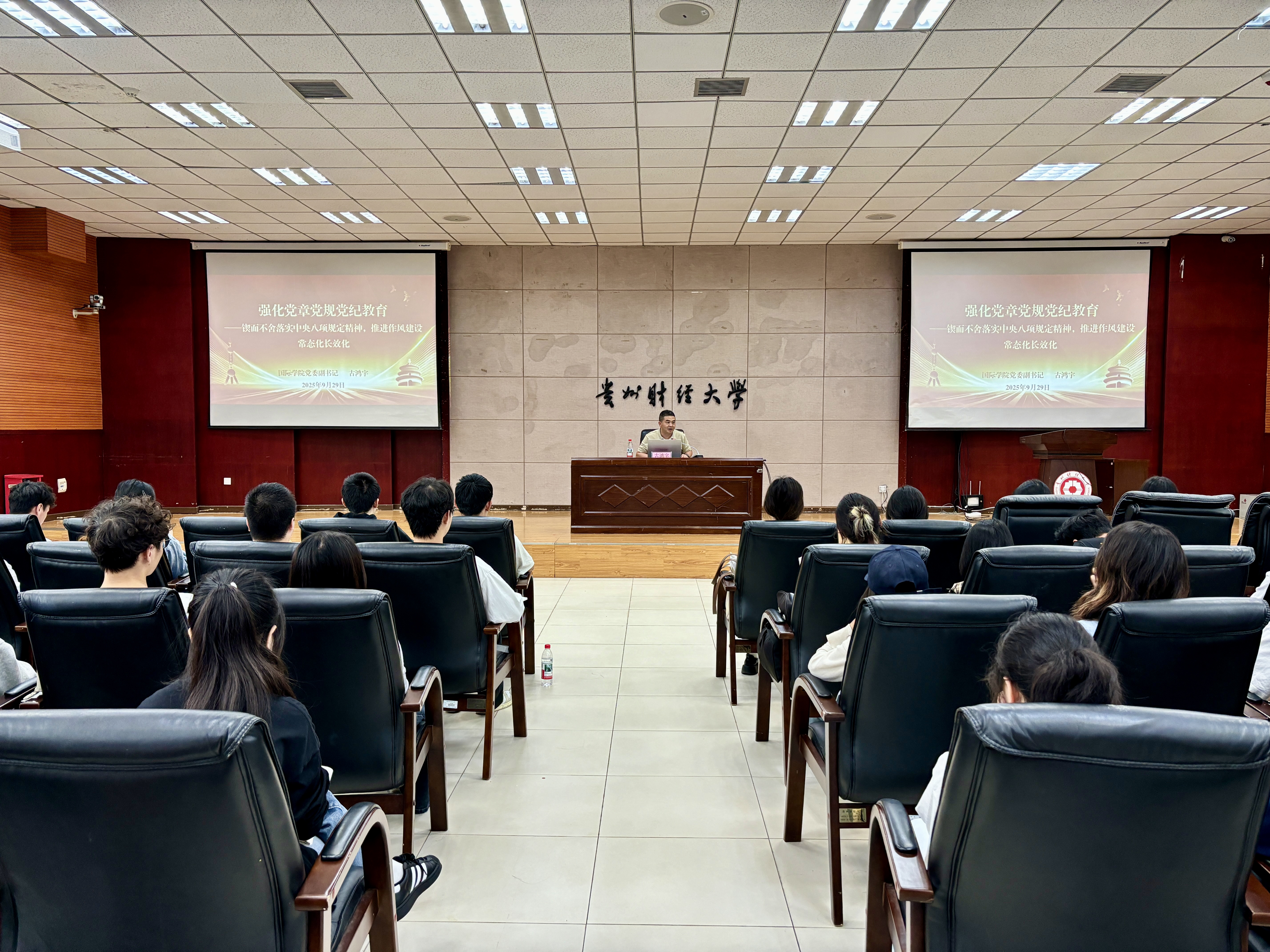 党委副书记、纪委书记(兼)古鸿宇在正德楼114报告厅为2025年秋季入党积极分子和支部党员讲授 “强化党章党规党纪教育—锲而不舍落实中央八项规定精神,推进作风建设常态化长效化”专题党课。