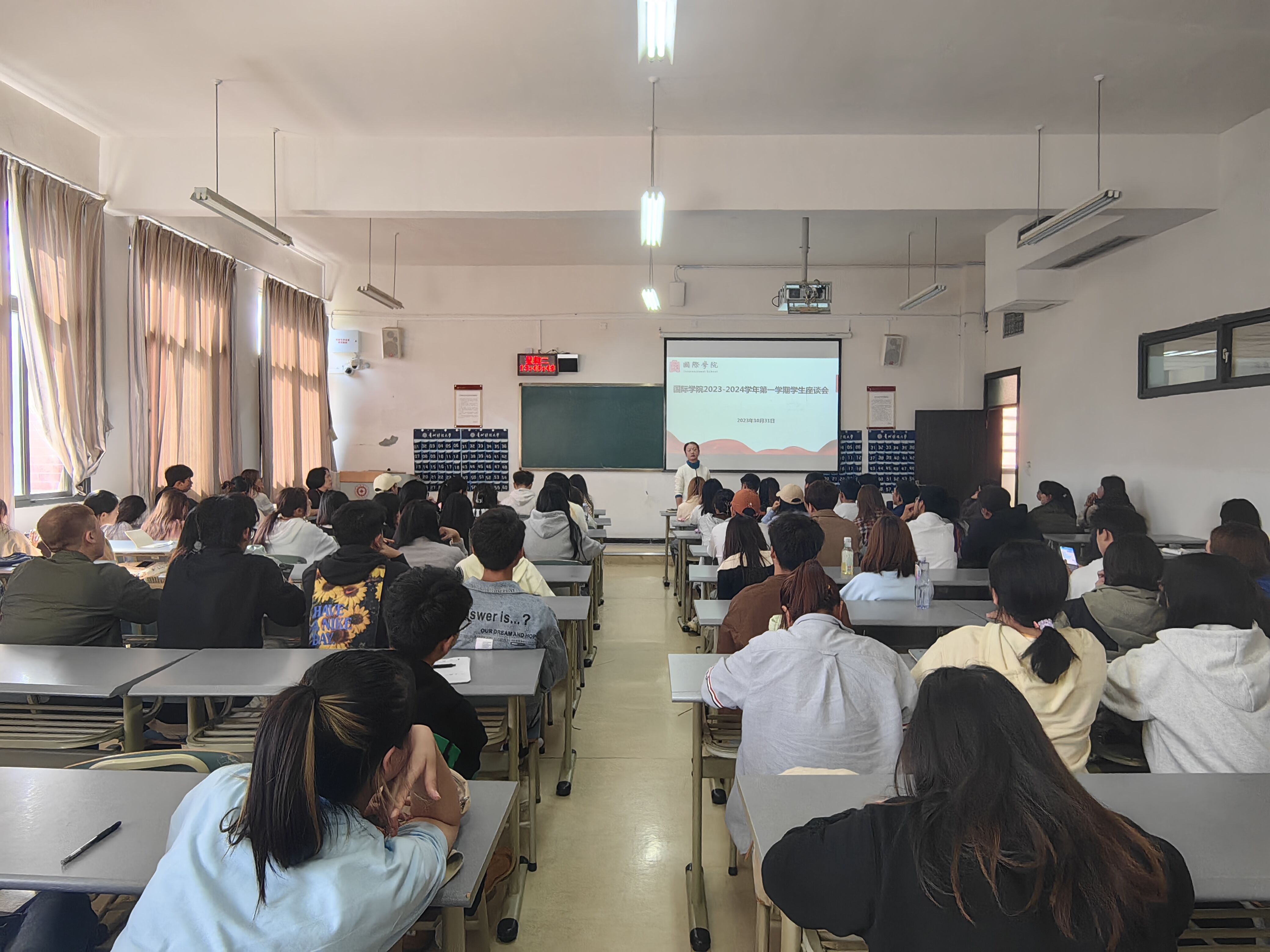 最后,刘利音对本学期同学们的学习态度和精神面貌表示肯定,要求参会的同学务必严格要求自己,遵守课堂教学纪律,做好表率作用,带动班级同学的学习;也希望同学们做一个自律的人,认真地规划和思考自己想成为一个什么样的人,为自己的目标努力奋斗。