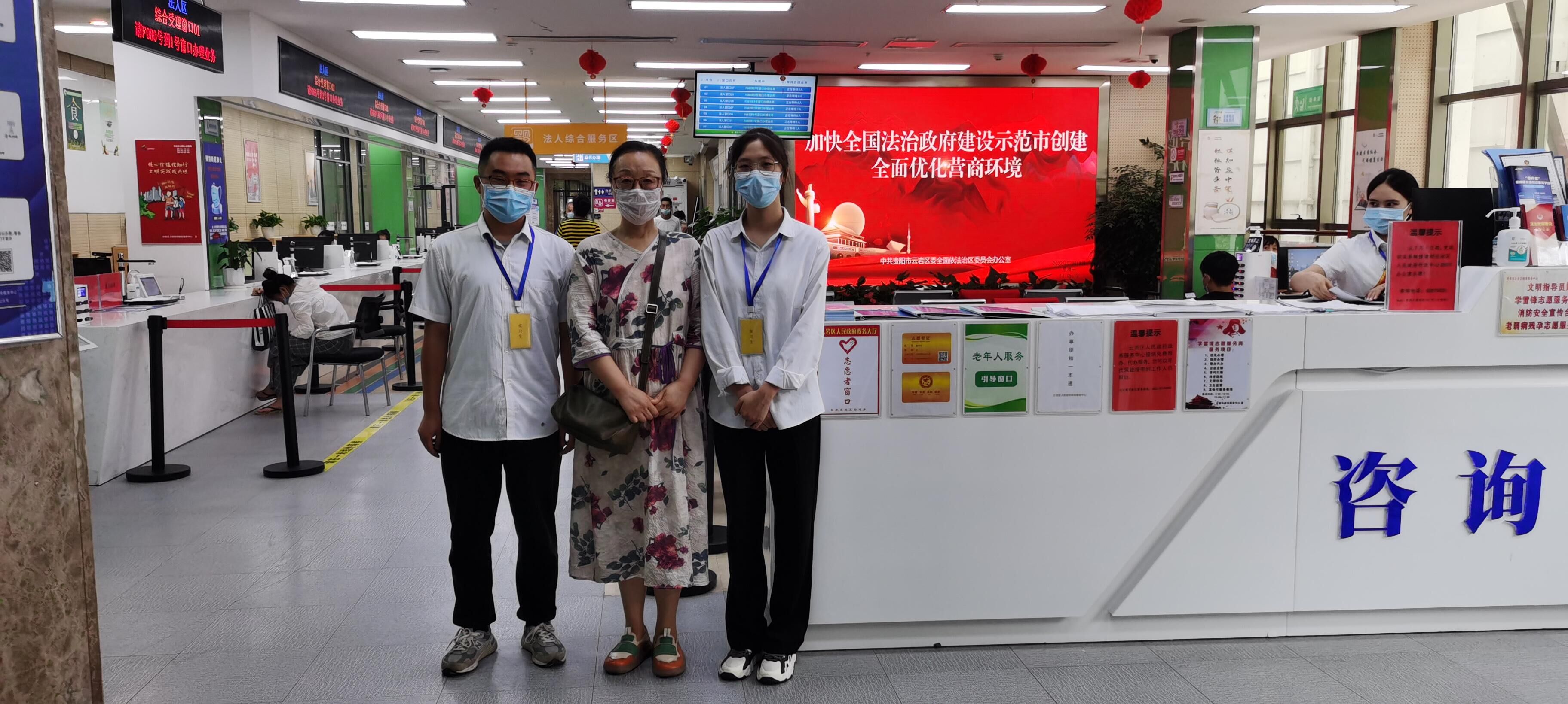 党委副书记黄暐和教务科老师沙静赴云岩区政府政务服务中心对19级参与集中实习20名学生开展实习检查。