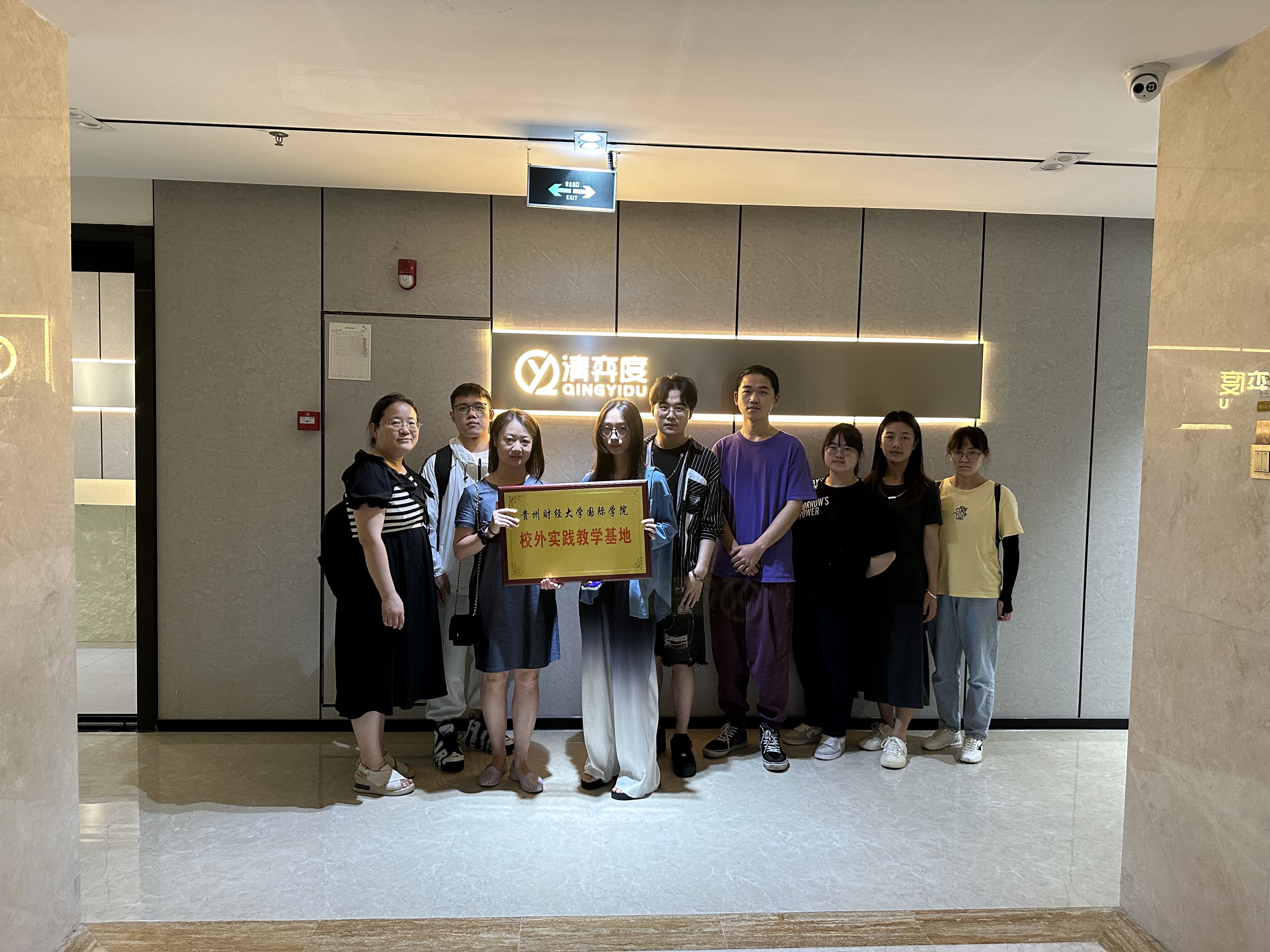 学生代表到贵州清奕度文化传媒有限责任公司进行实地了解、实习实训基地签约和授牌。