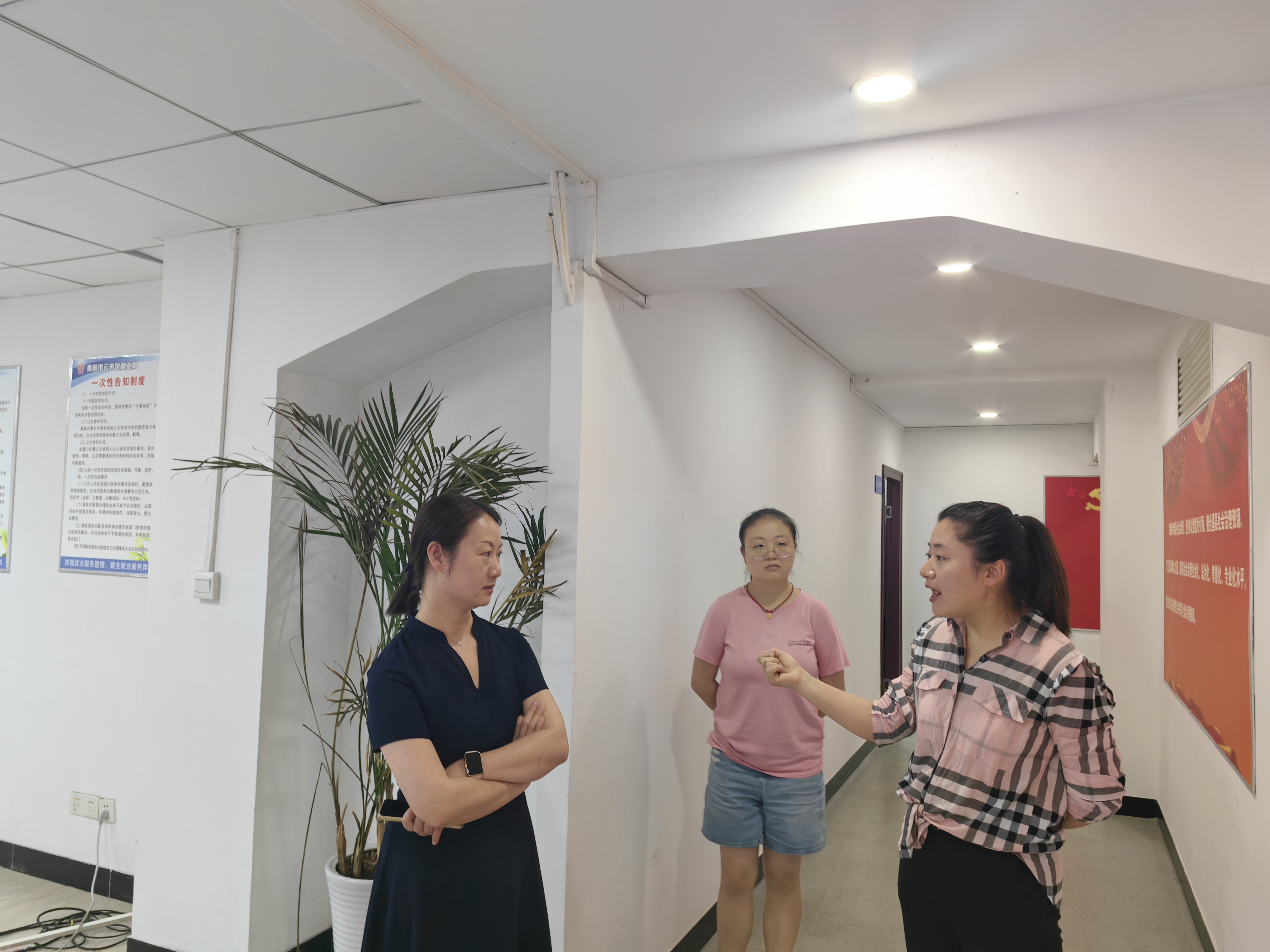 贵阳市云岩区创业协会会长熊丽娟带领石莉一行参观了创业基地,提出目前大学生初入社会,可以从众创制、服务制、合作制等模式出发,构造创业模型。石莉表示创业基地资源应该足够凸显,立足于学生角度,帮助更多有创业思维但不知道如何做或者想要创业的学生提供一个信息平台和更多指导。