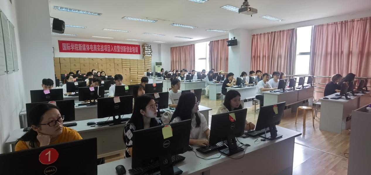学生进行培训。培训过程中,学生积极参与、踊跃发言,在贺鹏讲师的讲解与带领下,深入了解新媒体电商的发展情况及视频、直播的运营。