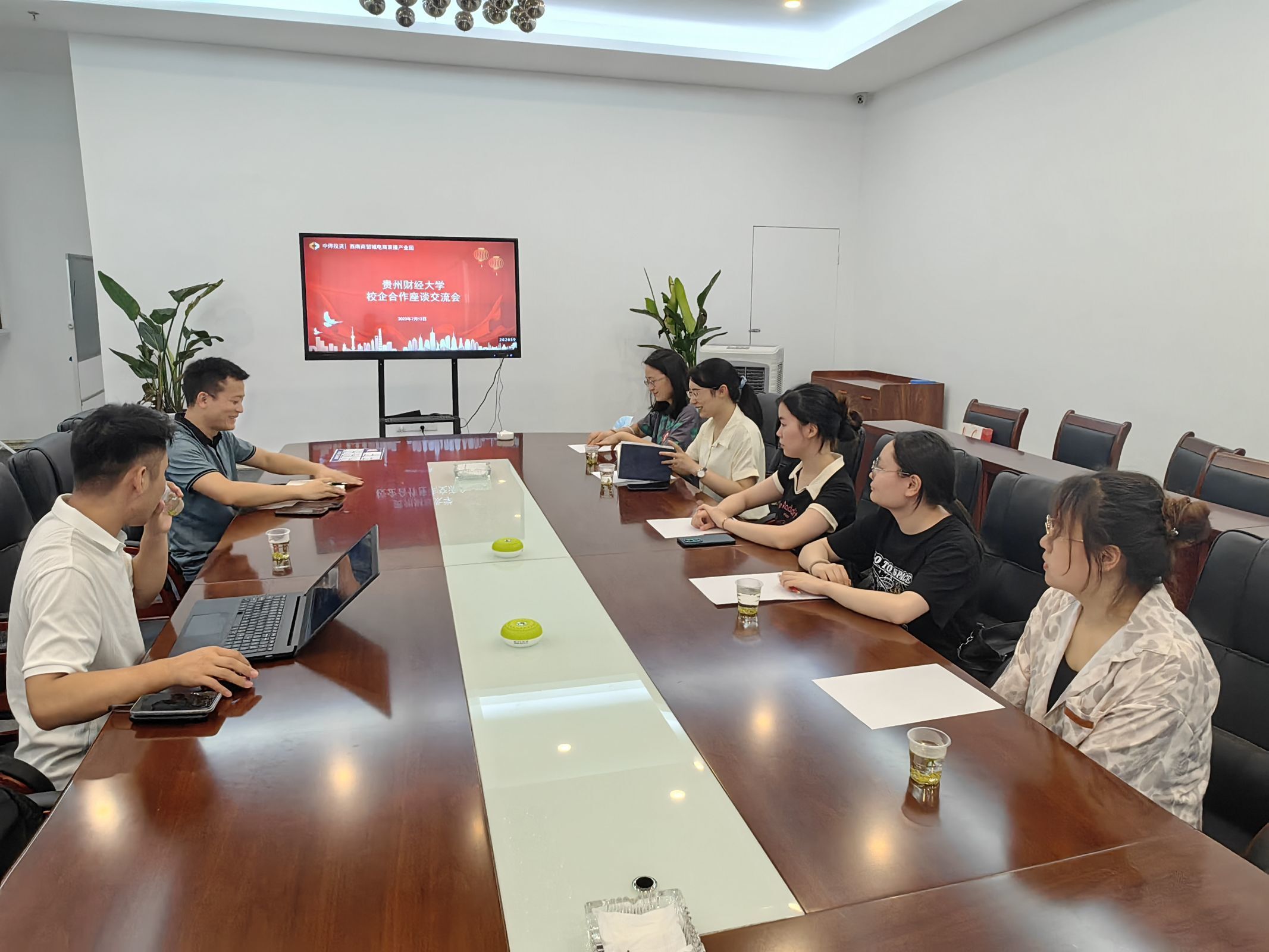在与实习单位的座谈中,肖启迪勉励实习生珍惜机会、虚心学习、把课堂理论和社会实践紧密结合起来,要善于学习,积极努力地投入到实习中去,要勇于担当,多看、多做、多想、多总结、在实习中收获成长。西南商贸城直播基地的负责人也对实习工作的组织、安排和实施等情况进行了介绍,并对实习生在实习中的优秀表现予以肯定。