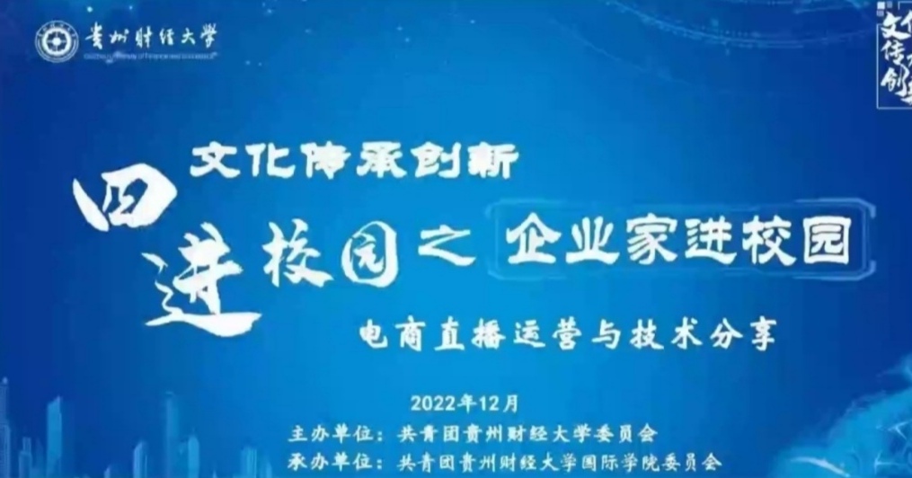 举办“企业家进校园”--“电商直播运营与技术分享”主题讲座。活动邀请了王小艺文化传媒机构总经理、黔小农云上农场创始人、CCTV《我的美丽乡村》节目、新华网《经济新观察》节目贵州区域导演、编导、北京《农文旅文化》新媒体及MCN机构创始人之一的王晨光作为主讲嘉宾。