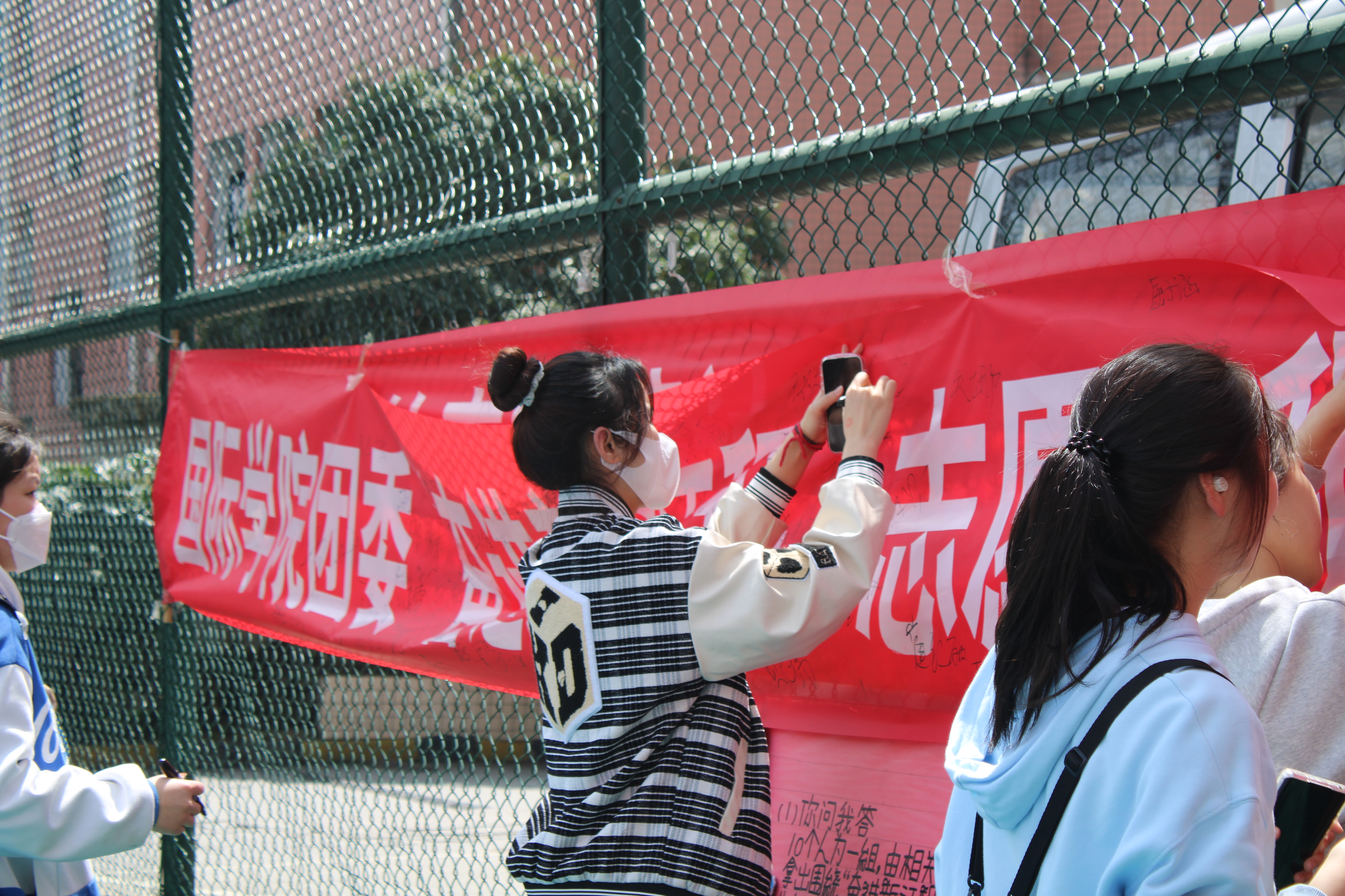 活动开始,围绕雷锋及雷锋精神方面的知识,以图片问答的形式开展“雷锋精神知识问答”。内容丰富的知识问答使同学们了解了更多关于雷锋的故事。透过一件件看似平凡却又不凡的事迹,同学们对雷锋“向上”的人生态度和“向善”的价值追求有了更深刻的认识。随后,志愿者向现场的同学们讲述雷锋的故事,同学们在横幅上郑重地签下自己的名字。横幅上满满的名字,是同学们对雷锋精神的追寻,是将志愿服务进行到底的决心,是立志传承雷锋精神、做新时代雷锋的承诺。