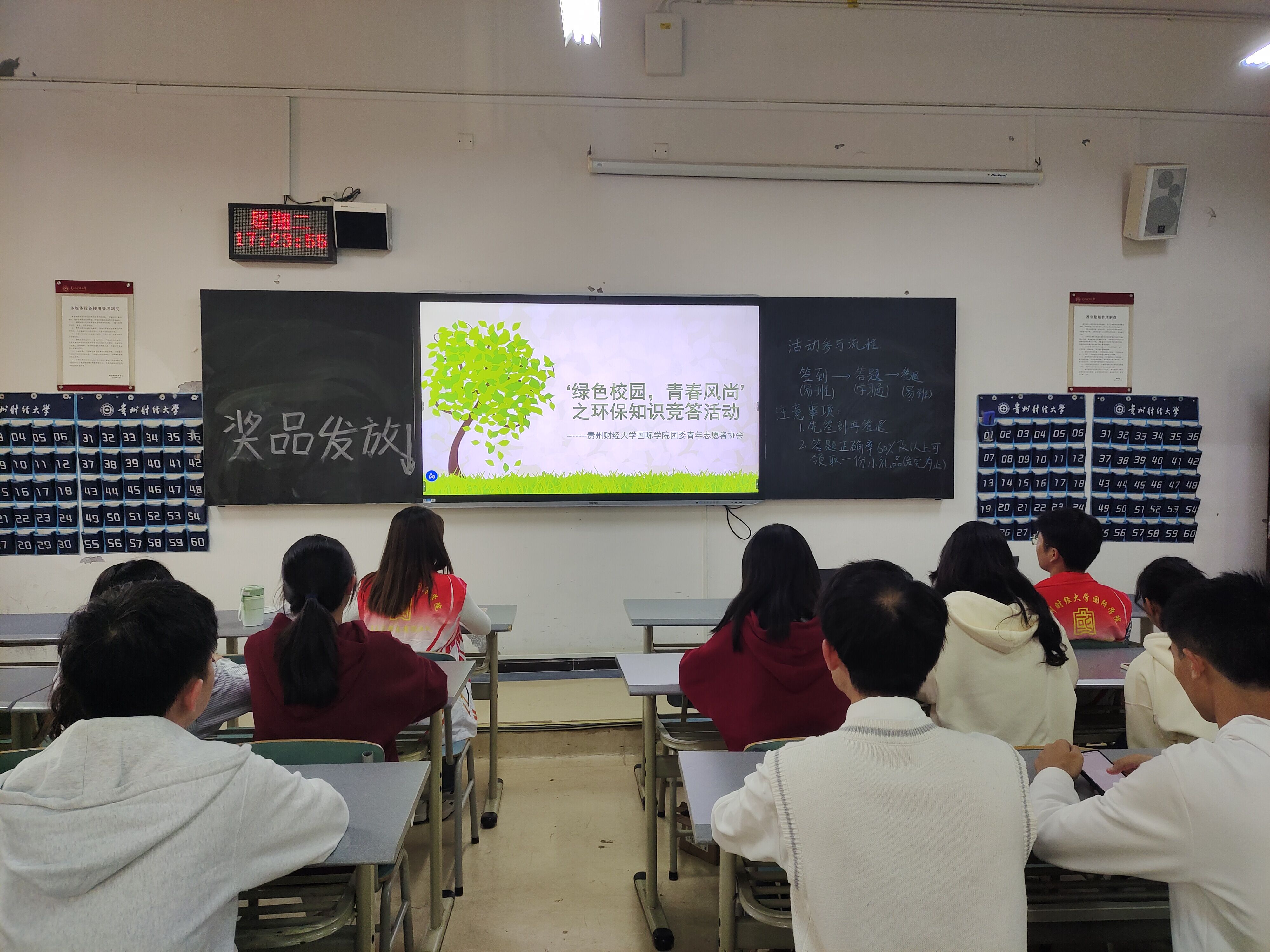 于10月31日在博学楼2-1举办“绿色校园,青春风尚”环保知识竞答活动。