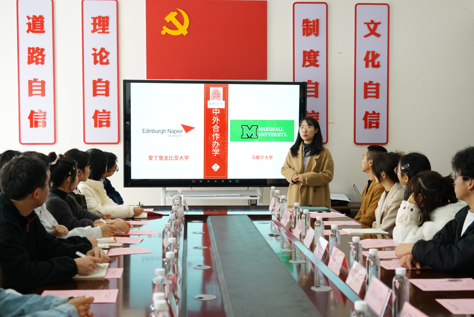 学生工作的具体开展情况、中外合作办学项目以及留基委相关留学政策等,希望借助这个契机为有意愿出国留学的同学搭建桥梁,以便同学们做好海外留学和升学规划。各学生会主席团代表踊跃发言,对目前校院两级学生会工作中存在的部分问题展开了交流,积极分享有借鉴意义的解决方案,并对未来的活动进行规划,也为下一步学生会工作指明了方向。