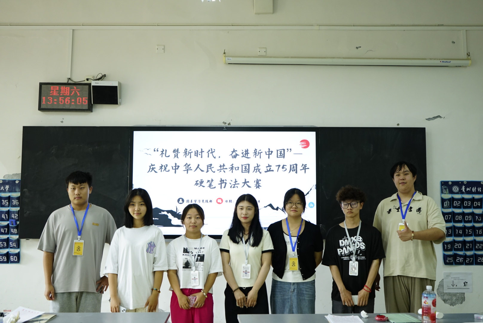 在博学楼2-18教室举办“礼赞新时代,奋进新中国”——庆祝中华人民共和国成立75周年硬笔书法大赛。