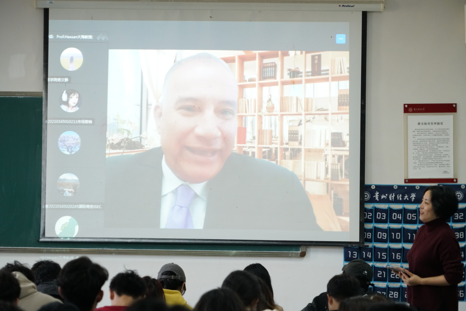 刘利音对HASSAN RAGAB教授的讲授表示衷心的感谢,并鼓励同学们要努力学习,坚定信念,树立目标,不断开拓国际视野,奋发有为,加强对中埃文化交流的了解,自觉承担起传播中华民族优秀传统文化的重任,成为中国文化交流的使者,为推进国家文化自信自强发展贡献力量。