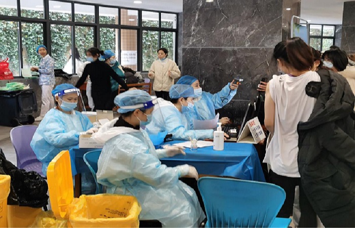 在鹿冲关校区一教大礼堂进行了新冠疫苗加强针接种工作。
