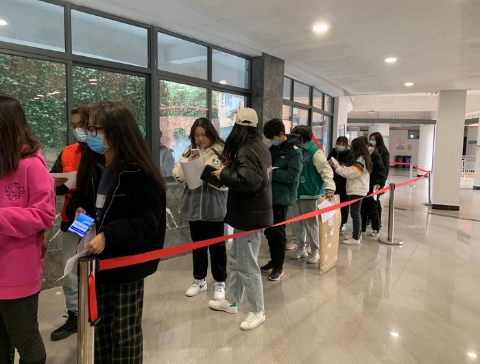各相关部门工作人员各司其职,做好人员组织、场地设置、器材配备和后勤保障等各项准备工作,按照疫情防控的要求将场地划分为等待区、咨询区、登记区、注射区、留观取以及应急处理区,切实保证了接种流程的有序性和规范性。在新冠疫苗加强针接种现场井然有序,师生们按要求佩戴好口罩,出示相关证件和扫码登记,在礼堂内有序排队等待接种、留观,全程认真配合医疗工作人员的工作。