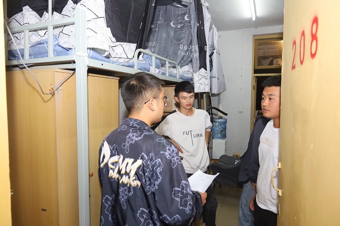本次检查主要针对宿舍有无私自乱拉接电线、超负荷使用大功率电器设备和劣质插线板等违规现象。检查人员在走访过程中逐一检查宿舍卫生以及用电安全隐患,提醒同学们近期气温骤降、需防寒保暖,特别要注意防火,并叮嘱学生要保持宿舍的清洁卫生、营造良好的学习和生活环境。