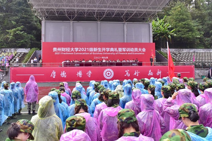 2021年军训工作全面开启。在嘹亮的《贵州财经大学校歌》中,2021级新生开学典礼暨军训动员大会圆满结束。