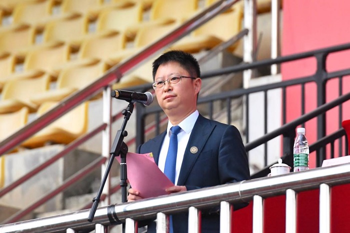 鹿冲关校区举行2021级开学典礼暨军训动员大会。校领导刘雷、赵普、杨勇、朱克乾、龙化、徐大佑、彭洁、肖小虹、李汉文、何青、陈明以及学校各Et足球直播