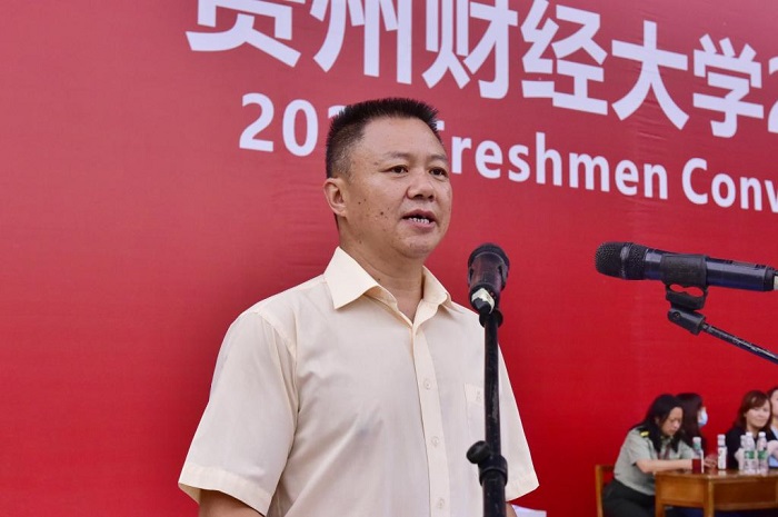 校党委副书记、校长赵普致辞。他向新生们介绍了贵州财经大学的历史以及贡献,并对新生提出了三点要求:一是要有学术报国的志向;二是要有博学专精的追求;三是要有求学问道的精神。此外,赵普号召全校师生要秉承“艰苦奋斗、严谨务实、负重致远”的贵财精神,彰显“崇尚学术、求真务实、经世致用”的贵财自信,共同以实际行动发出“请党放心,强国有我”的时代强音!