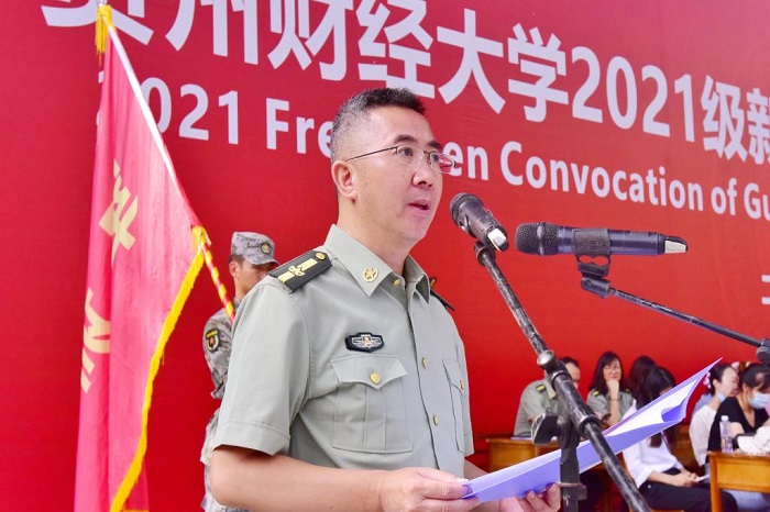 校党委副书记朱克乾宣读成立“贵州财经大学2021年学生军训师的通知”任命文件。