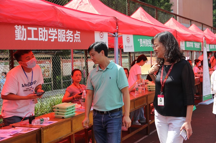 领导也来到了迎新现场,他们走访了每一个工作点,认真了解每一项工作开展情况,与2021级新生亲切交流,给工作人员送去暖暖问候。现场工作人员和学生志愿者热情服务,及时提供帮助,让每一位前来报到的新生都感受到学校的温暖。
